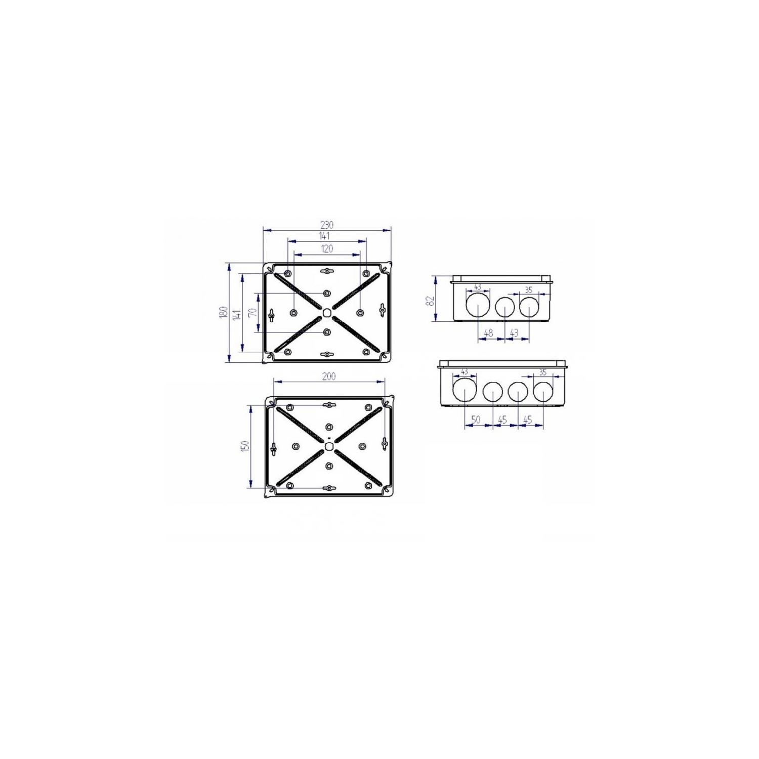Caja de Empalme y Derivación Estanca de Superficie IP55 230x180x85 mm