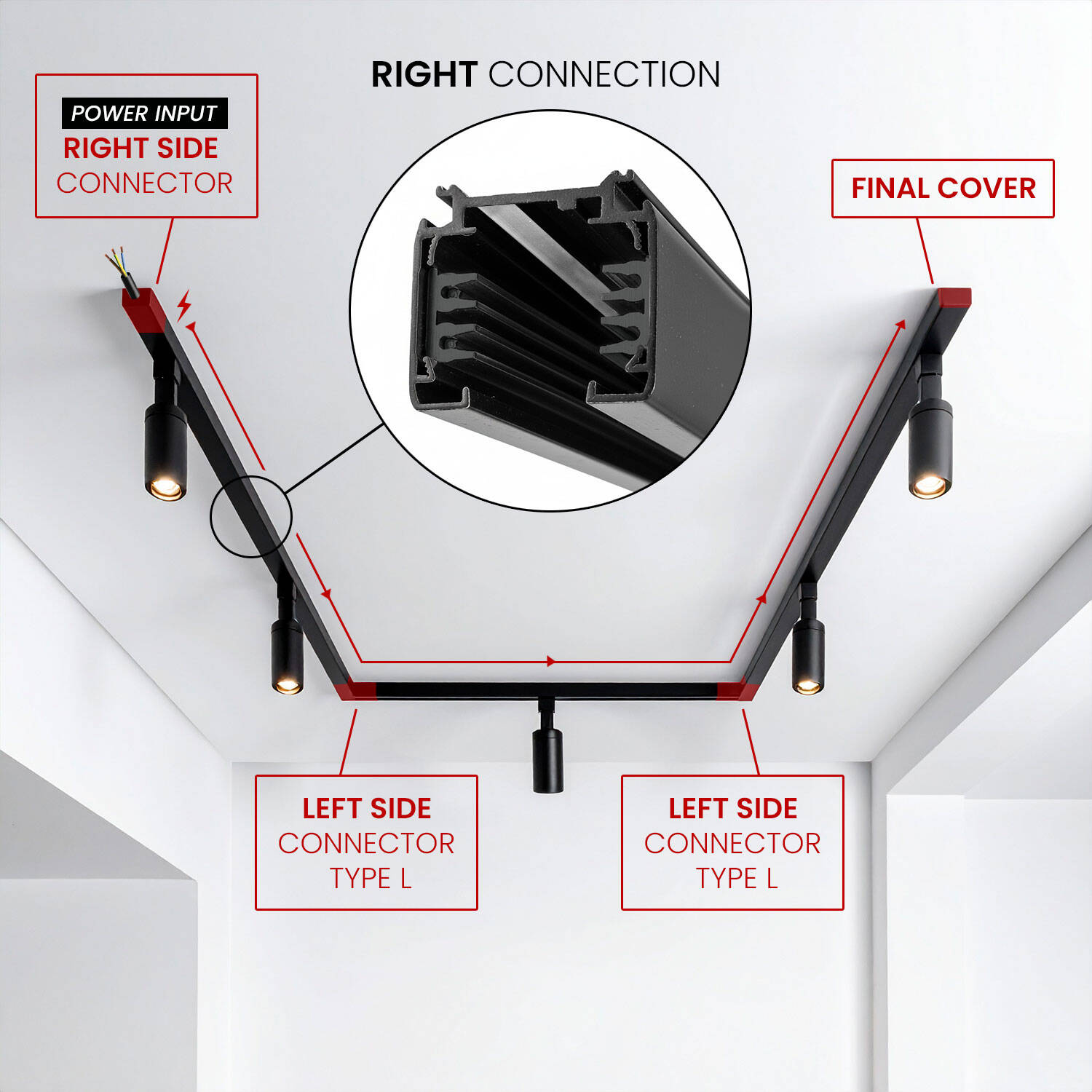 Conector Left Side Tipo L para Carril Trifásico