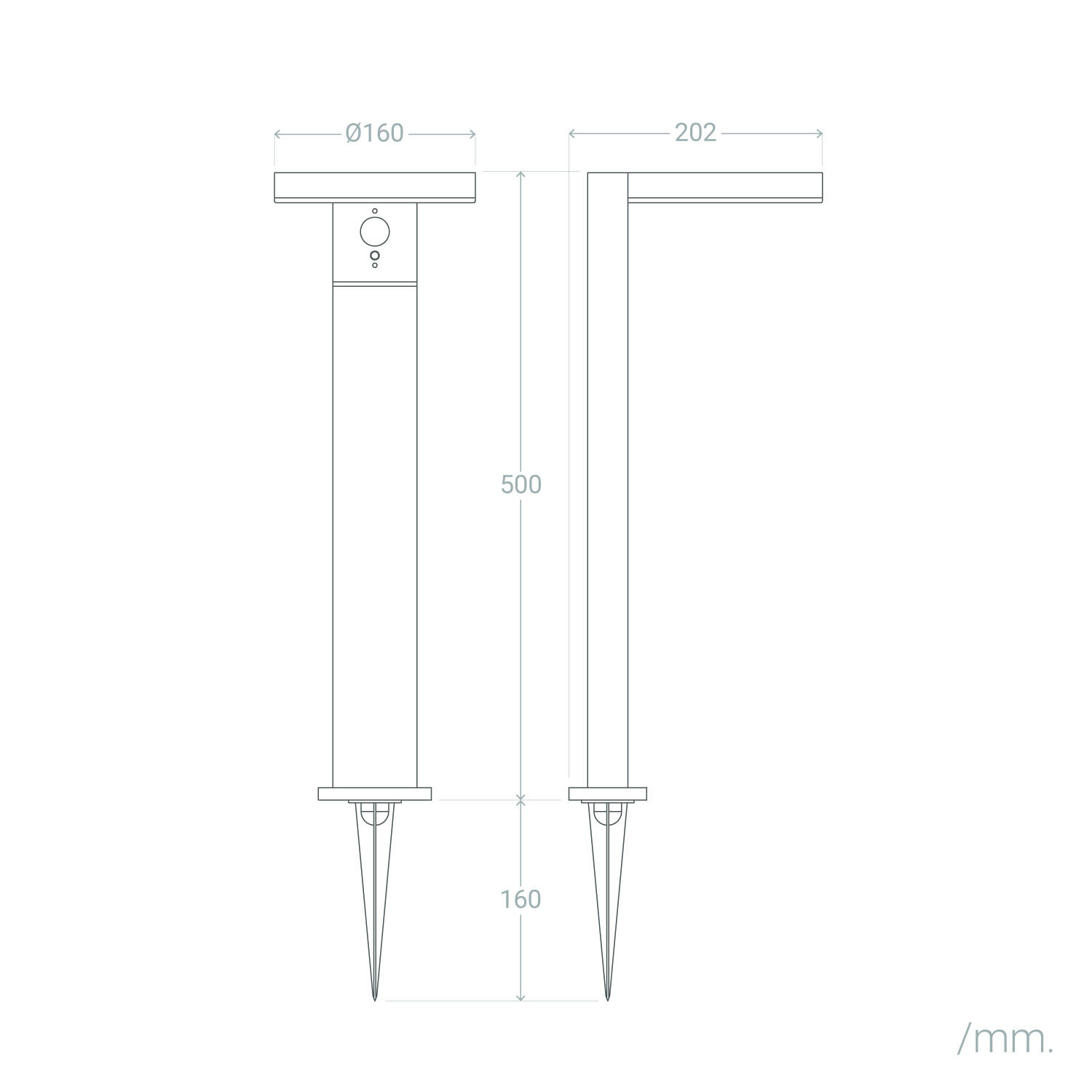 Baliza de Pie Exterior Solar LED 5W 50cm Aluminio con Sensor de Movimiento Aris