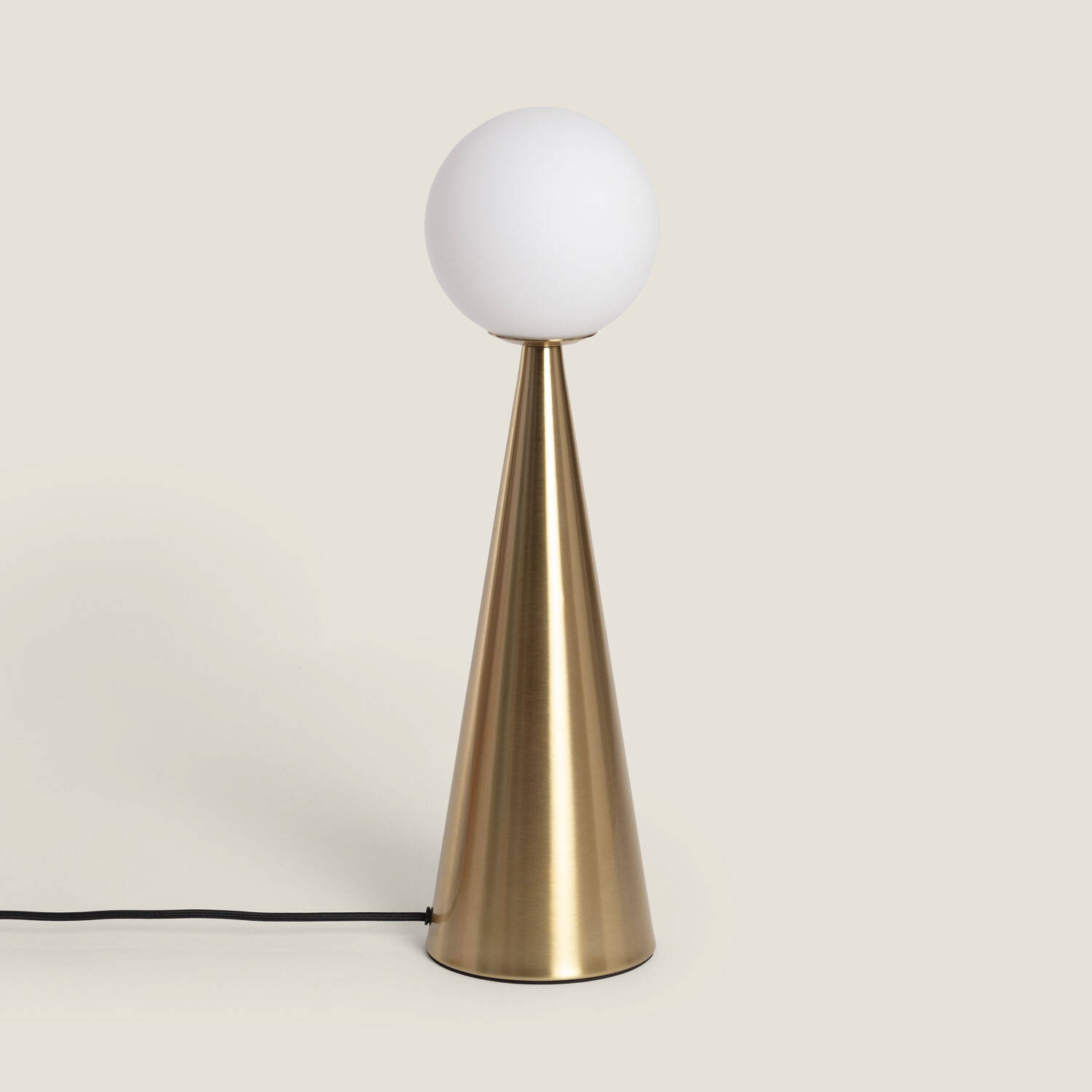 La lámpara de mesa Hipias combina elegancia y modernidad con su estructura cónica en metal dorado y su pantalla esférica de cristal opal. Su diseño minimalista aporta un toque sofisticado a cualquier estancia interior, ideal para salones o dormitorios. Funciona con bombillas E14 (no incluidas) de hasta 20W, ofreciendo una iluminación cálida y acogedora. Certificada con CE, RoHS y UKCA, garantiza calidad y seguridad. Su acabado dorado aporta un brillo sutil que realza la decoración sin sobrecargar el espacio. Además, cuenta con protección IP20 e IK02, adecuada para interiores. Con una garantía de 3 años, esta lámpara es una opción duradera y estilizada para iluminar y decorar con personalidad.