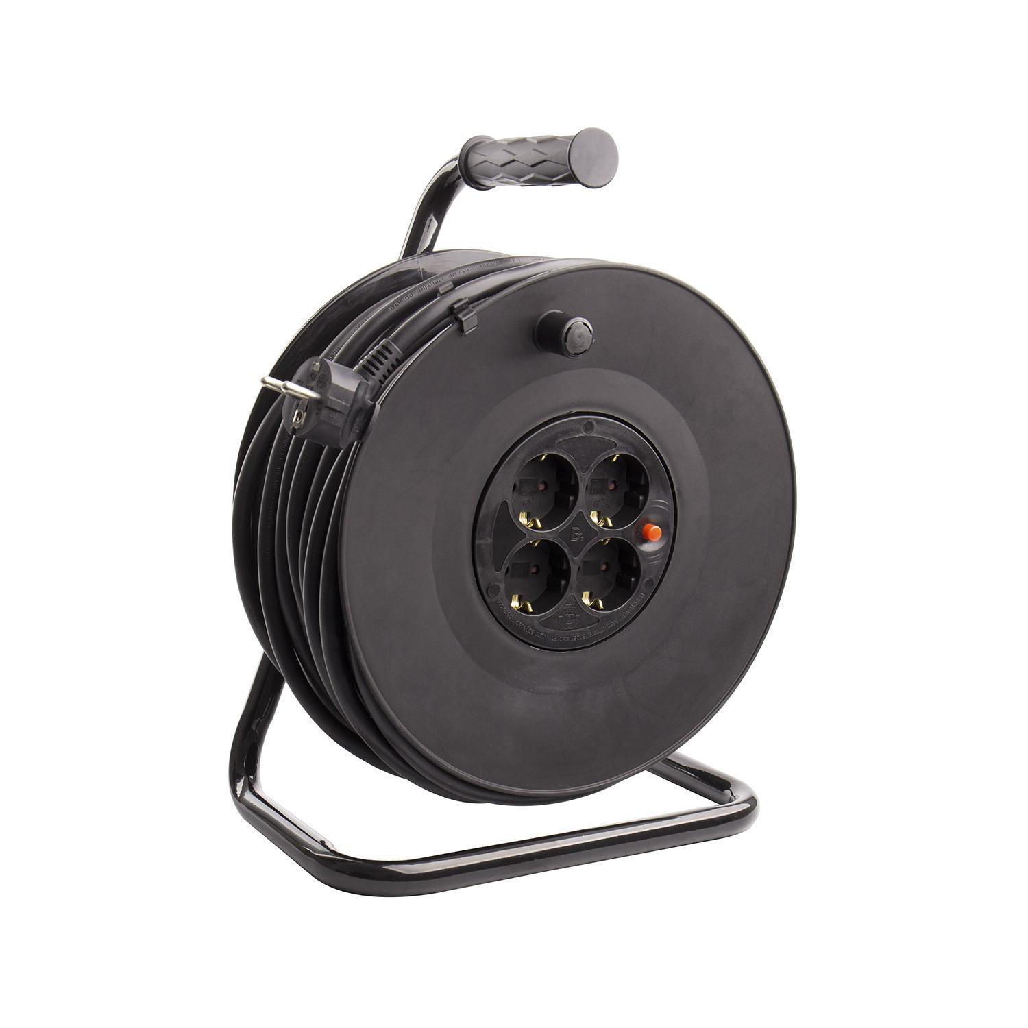 El Carrete Alargador de Cable de 40 metros con sección 3x1.5 mm² es ideal para uso en interiores, ofreciendo una potencia máxima de 3200 W y una intensidad de corriente de 16 amperios. Fabricado en PVC negro, cuenta con un sistema Anti-Twist que evita enredos, facilitando su manejo y almacenamiento. Su diseño robusto y compacto incorpora cuatro tomas de corriente protegidas, garantizando seguridad y comodidad en la conexión de múltiples dispositivos. Cumple con las certificaciones CE, RoHS y UKCA, asegurando calidad y cumplimiento normativo. Además, dispone de protección IP20 y una garantía de 2 años, lo que lo convierte en una solución fiable y duradera para extender la alimentación eléctrica en cualquier espacio.