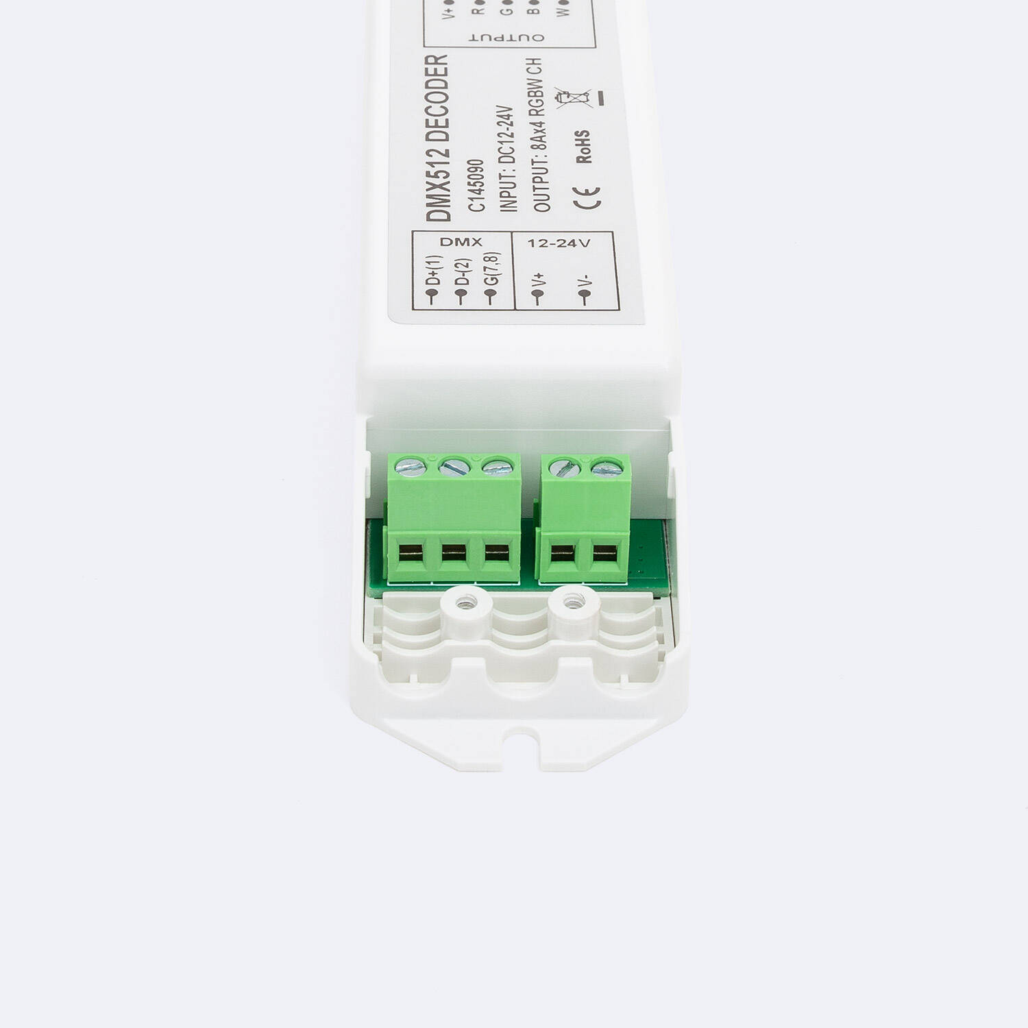 Este controlador RGBW DMX512 Decoder de 4 canales es la solución ideal para gestionar tiras LED RGBW con precisión y eficiencia. Compatible con tensiones de entrada de 12 a 24V DC, soporta una potencia máxima de 768W, ofreciendo un rendimiento óptimo en interiores. Fabricado en material PC resistente, cuenta con certificaciones CE, RoHS y UKCA que garantizan su calidad y seguridad. Su rango de temperatura de trabajo de -20 °C a 50 °C asegura un funcionamiento estable en diversas condiciones ambientales. Además, dispone de protección IP20 y una garantía de 3 años, lo que lo convierte en un dispositivo fiable para proyectos de iluminación profesional con control DMX.