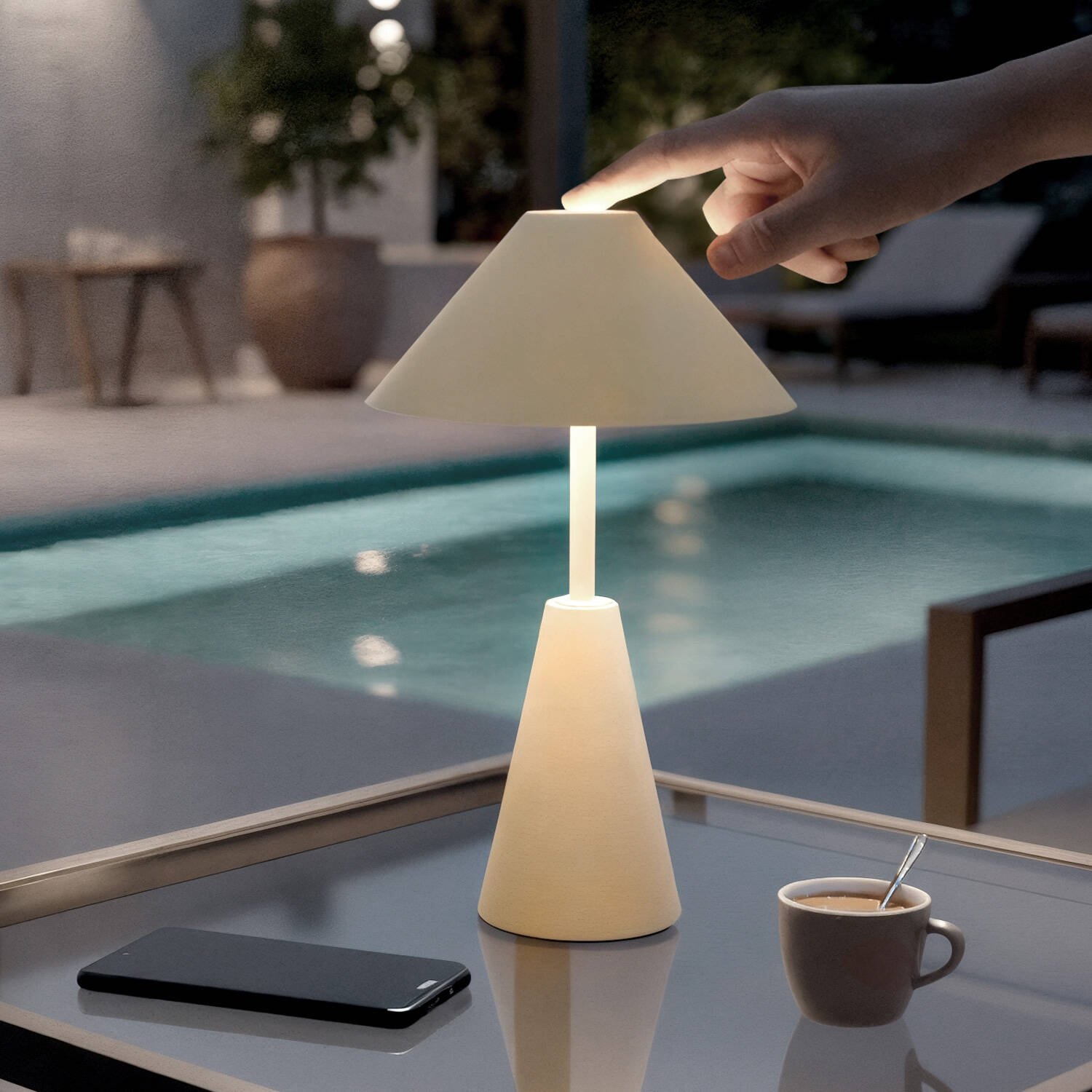 La lámpara de mesa LED portátil Chamle es la opción ideal para iluminar tus espacios interiores y exteriores con estilo y funcionalidad. Fabricada en metal beige, combina un diseño moderno y elegante con una potencia de 3W y una luz blanca cálida de 3000K que ofrece 240 lúmenes, creando un ambiente acogedor. Su batería recargable y cable USB incluido garantizan total movilidad y autonomía. Además, cuenta con regulación táctil para ajustar la intensidad según tus necesidades. Con certificaciones CE, RoHS y UKCA, protección IP44 contra salpicaduras y una vida útil de 30.000 horas, esta lámpara es práctica, duradera y segura. Perfecta para cualquier rincón que requiera una iluminación versátil y portátil.