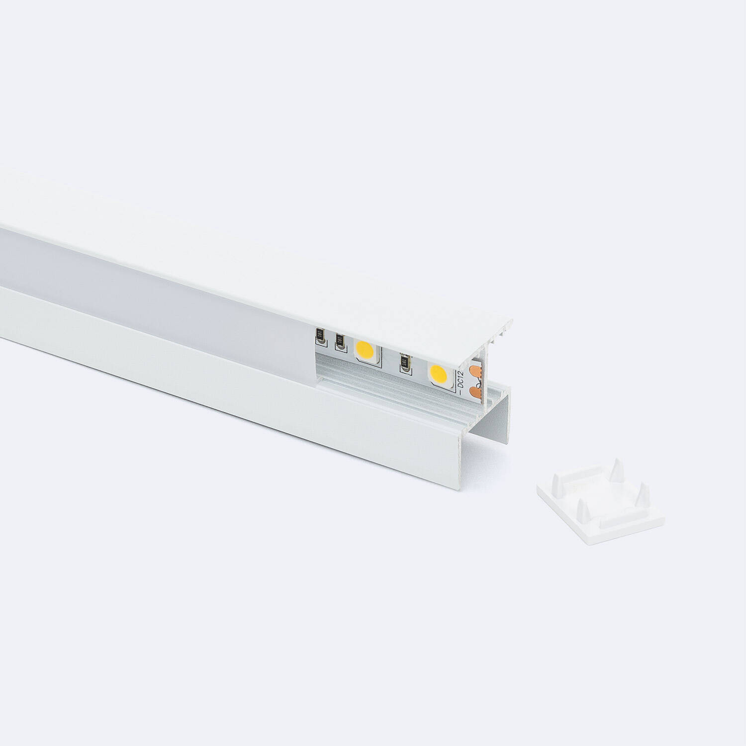 Perfil Aluminio Estantería para Tira LED hasta 12 mm con Tapa Continua