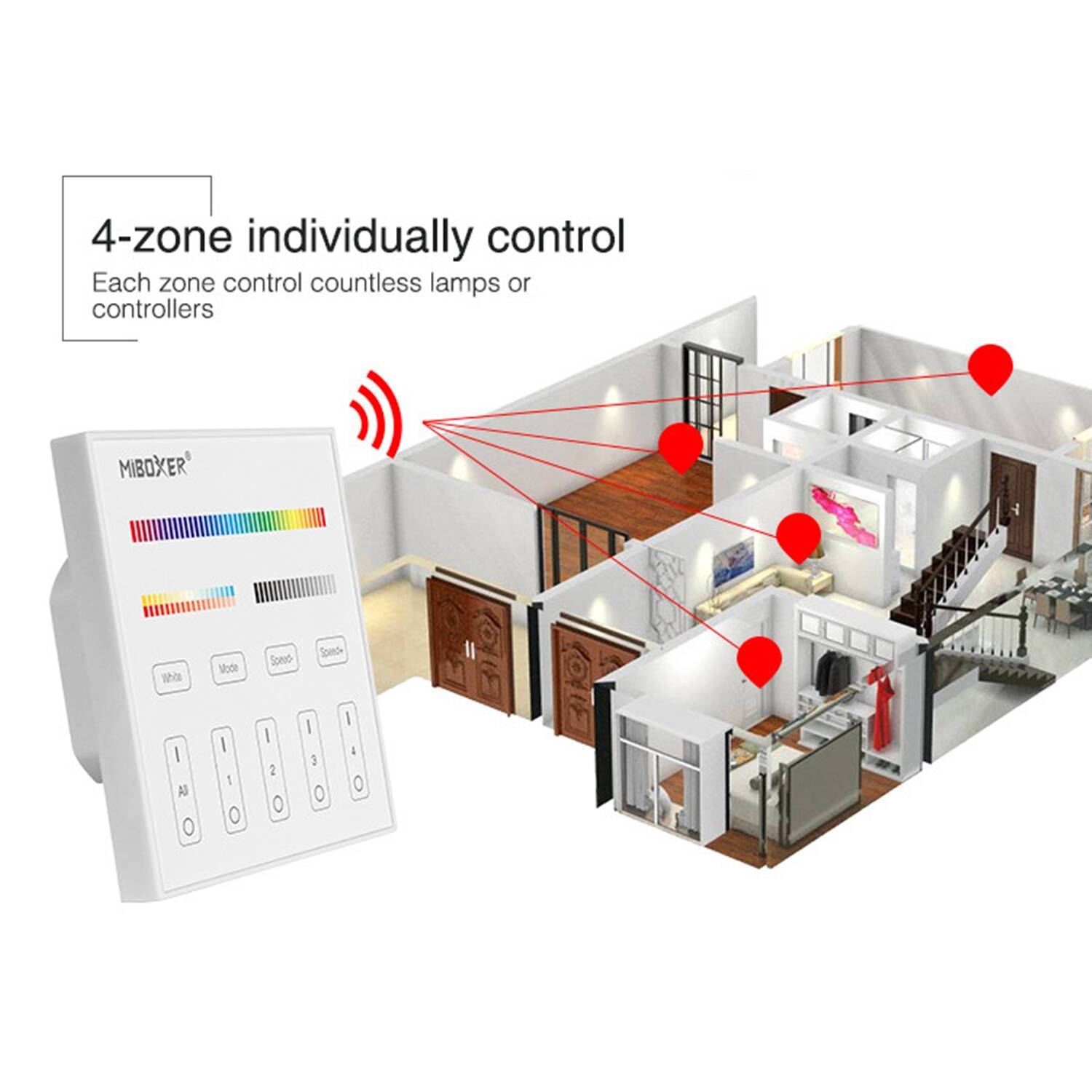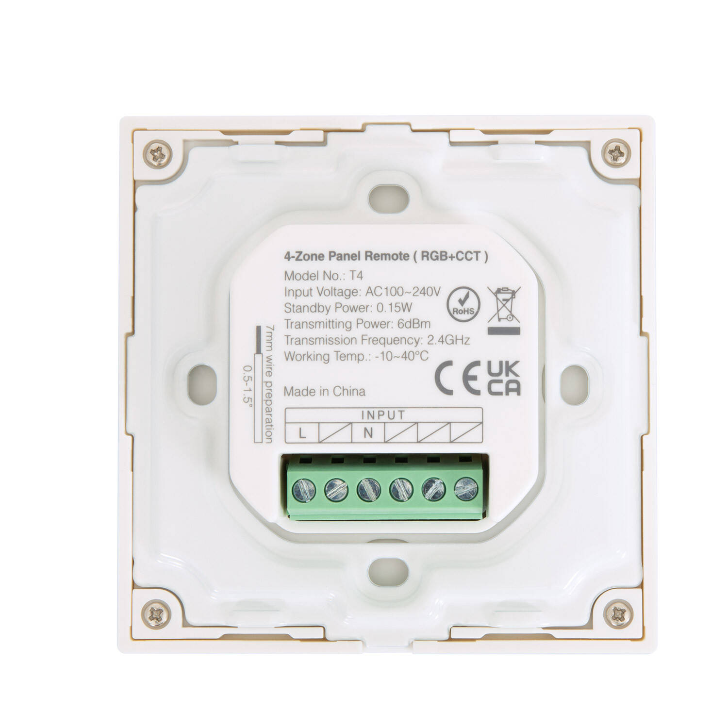 Mando RF 220-240V AC de Pared para Regulador LED RGBWW 4 RF Zonas MiBoxer T4