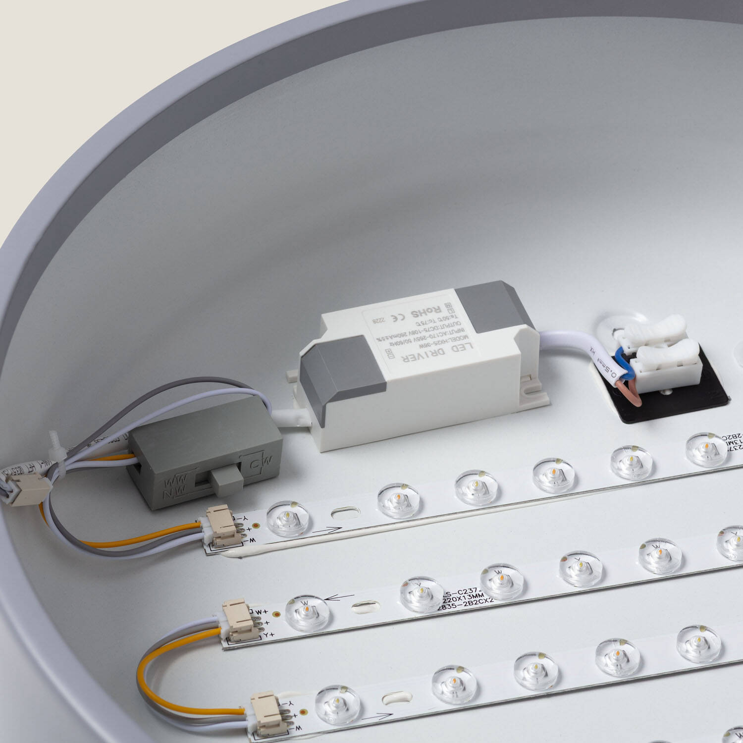 El plafón LED Eyelight de 24W y diámetro de 350 mm ofrece una iluminación versátil y eficiente para interiores. Su color de luz es seleccionable, permitiendo elegir entre cálido, neutro o frío (3000K a 6000K), adaptándose a cualquier ambiente. Fabricado en metal y PC con acabado gris oscuro, destaca por su diseño moderno y robusto. Proporciona una luminosidad de 2240 lúmenes con un alto factor de potencia de 0,98, garantizando un consumo energético óptimo. Soporta temperaturas de trabajo desde -30 °C hasta 50 °C, ideal para diversas condiciones. Además, cuenta con certificaciones CE, RoHS y UKCA, y una vida útil de 30.000 horas. Incluye driver y ofrece una garantía de 3 años, asegurando durabilidad y calidad.