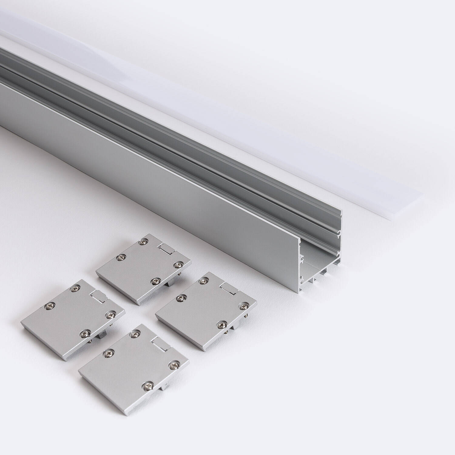 Perfil Aluminio Superficie con anclaje Empotrado mediante clips para Tira LED hasta 24 mm con Tapa Continua