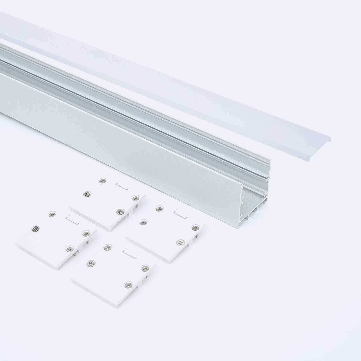 Perfil Aluminio Superficie con anclaje Empotrado mediante clips para Tira LED hasta 24 mm con Tapa Continua