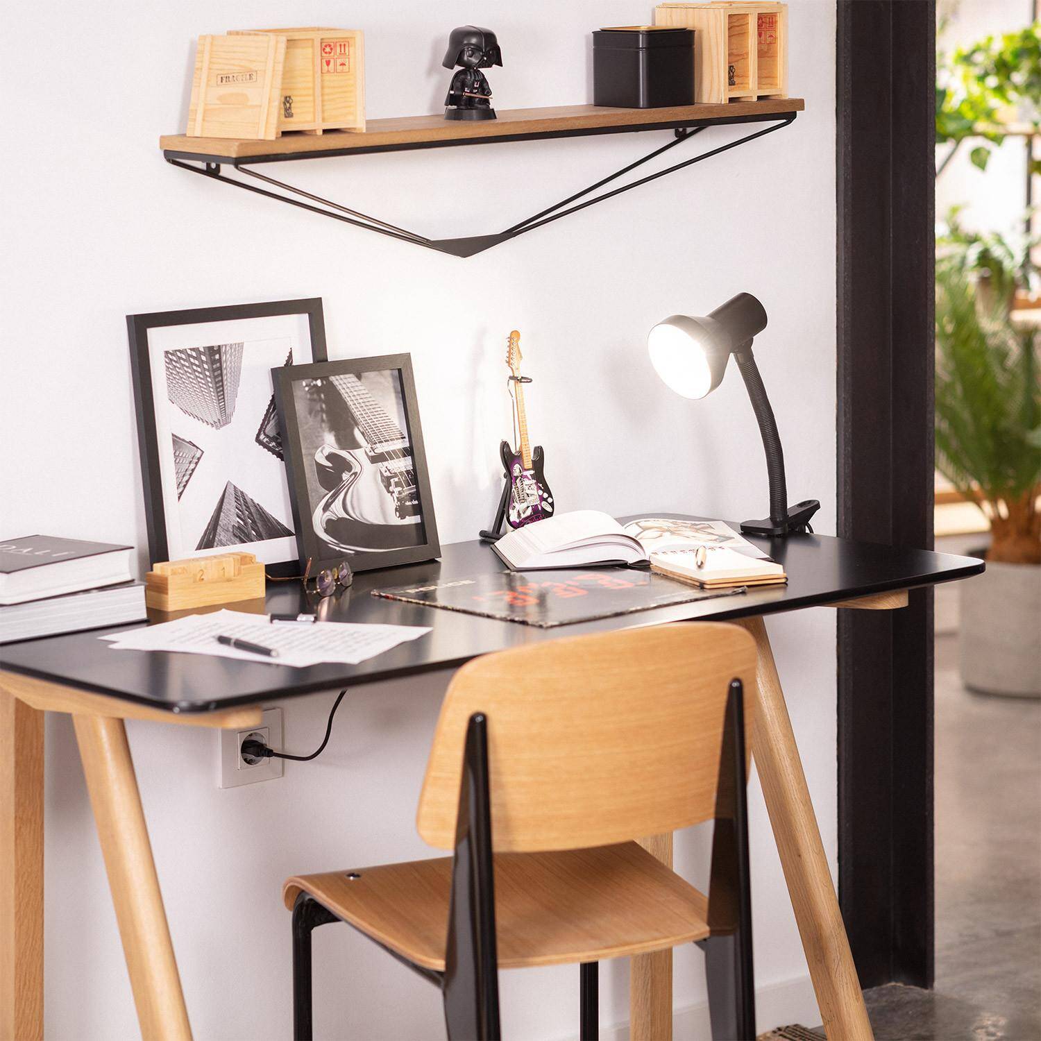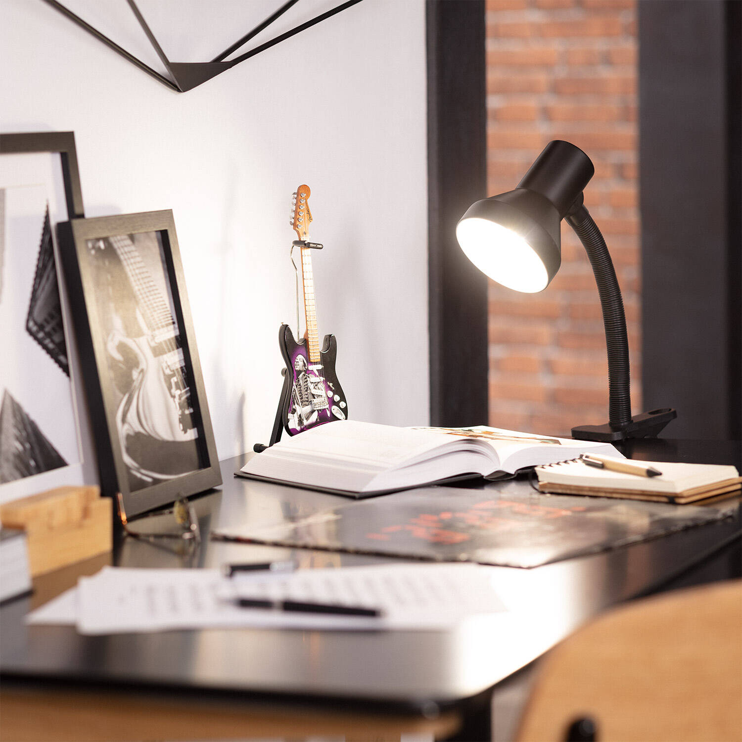 La lámpara flexo de escritorio Eret es una solución práctica y elegante para iluminar tu espacio de trabajo. Fabricada en metal negro resistente, cuenta con un brazo flexible que permite dirigir la luz con precisión gracias a su pinza ajustable, ideal para sujetarla en mesas o estantes. Funciona con bombillas E27 de hasta 40 W (no incluidas), adaptándose a diferentes necesidades de iluminación. Su diseño compacto y moderno se integra fácilmente en ambientes interiores, aportando funcionalidad sin renunciar al estilo. Además, cumple con certificaciones CE, RoHS y UKCA, garantizando calidad y seguridad. Perfecta para estudiar, leer o trabajar, ofrece una iluminación focalizada y cómoda en un rango de temperatura de -20 °C a 50 °C.