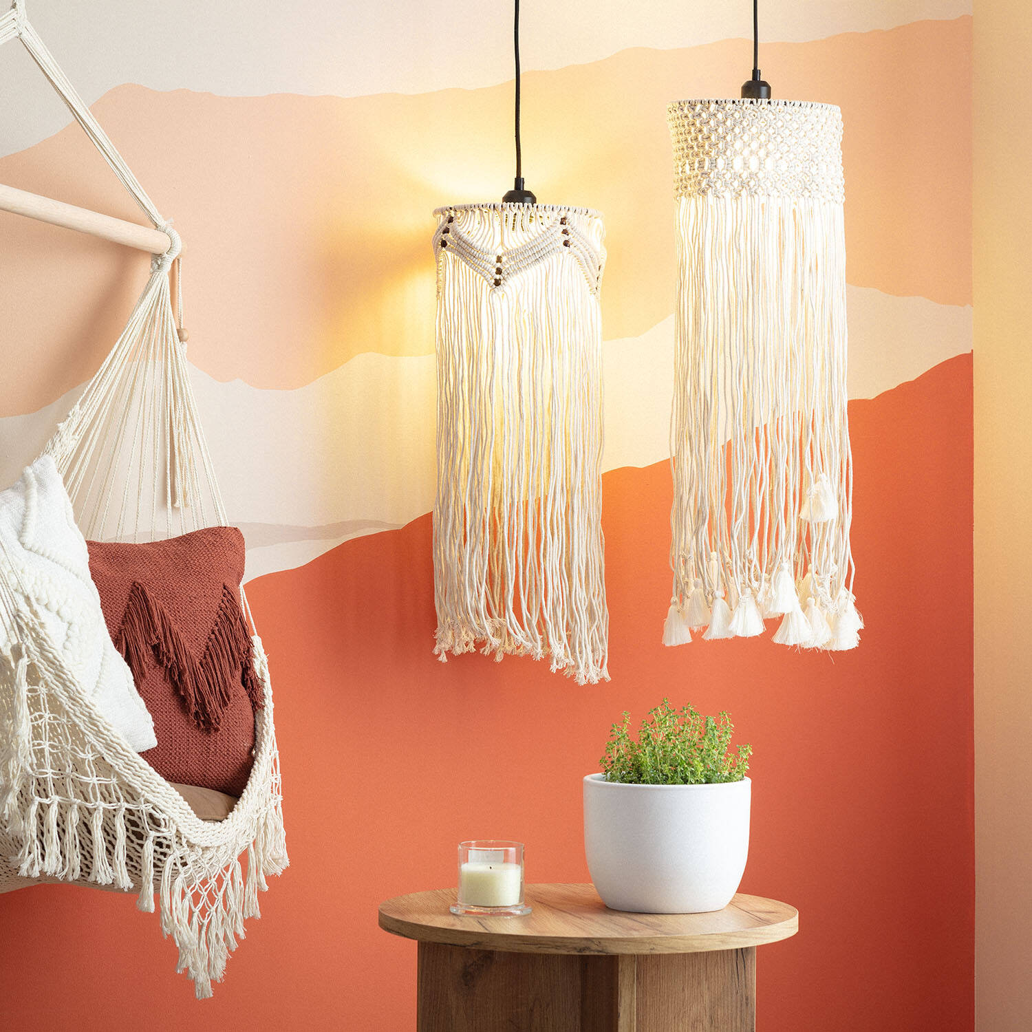 Lámpara Colgante Algodón Macramé Hupa