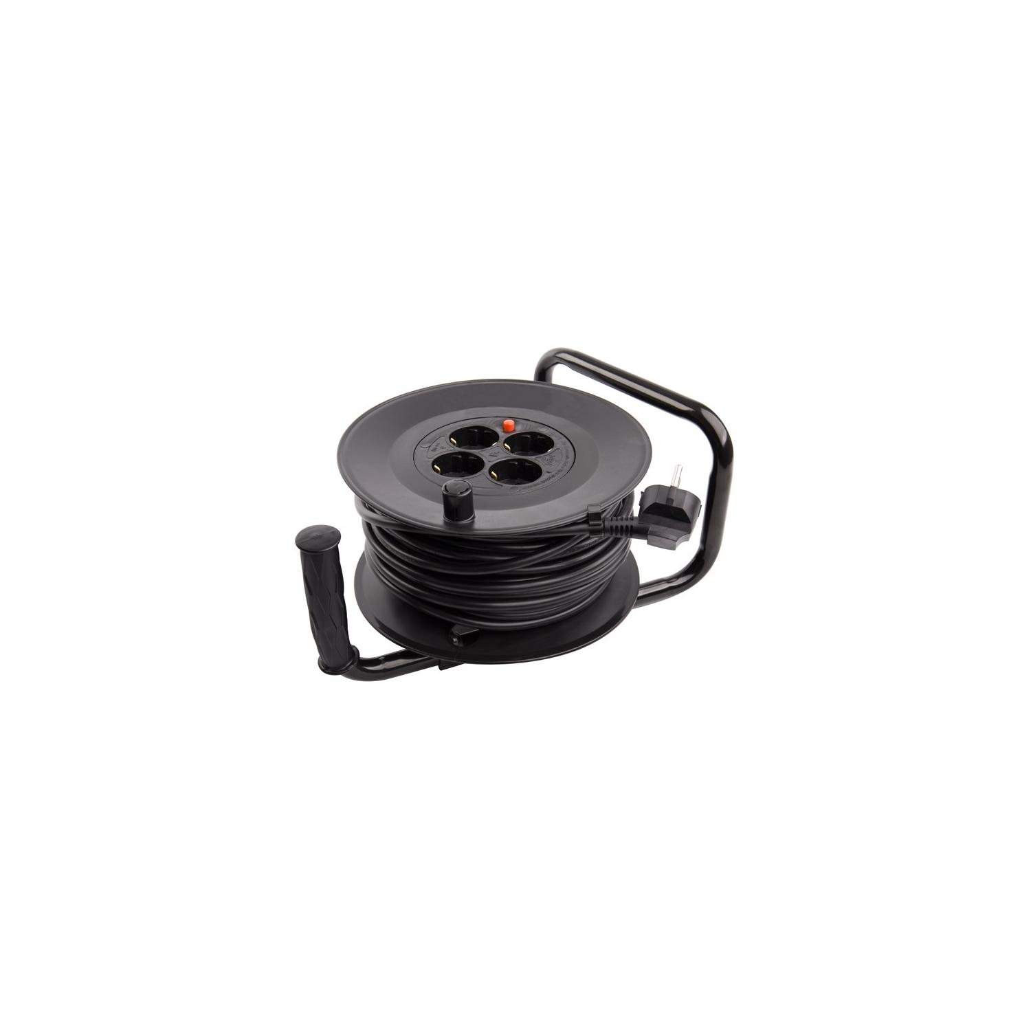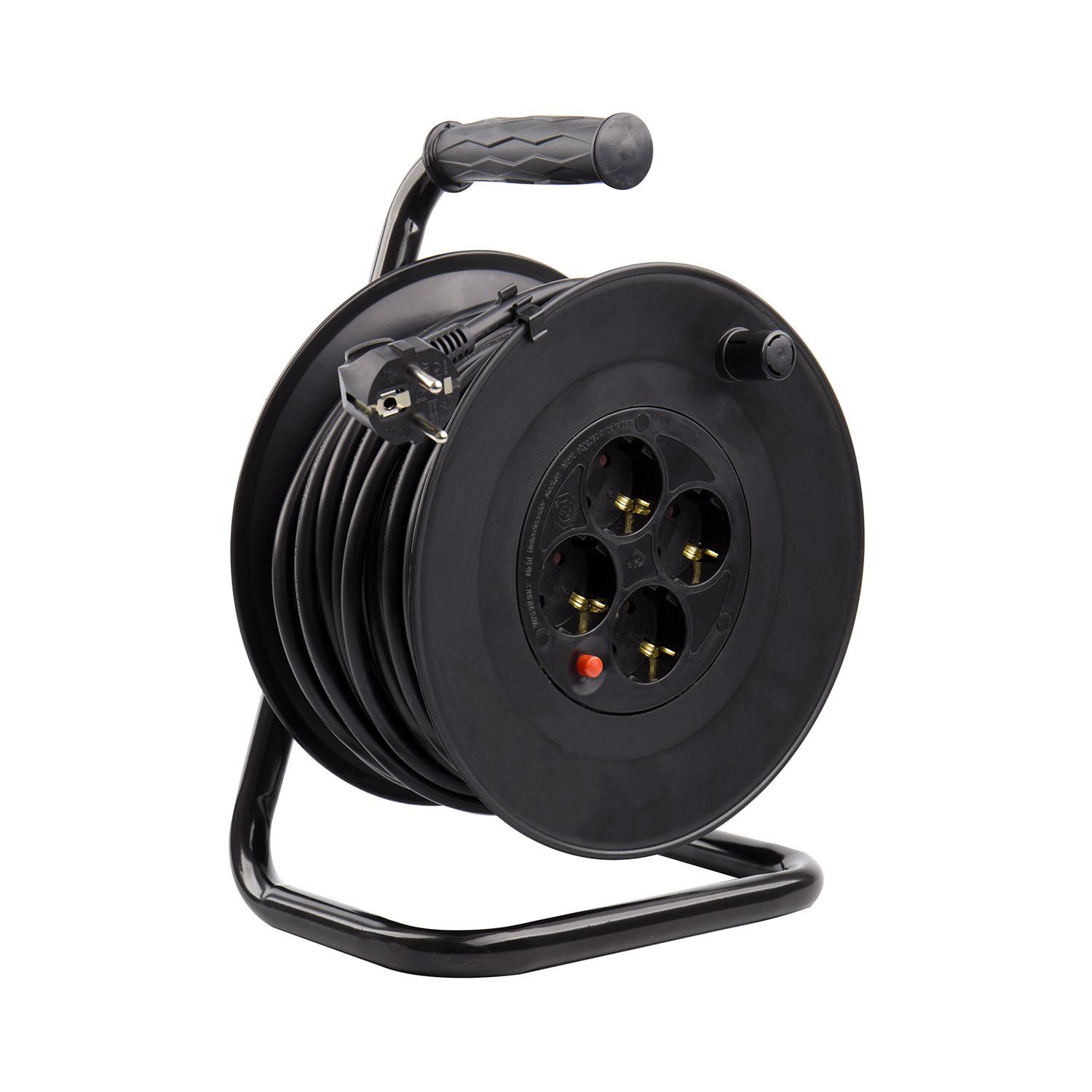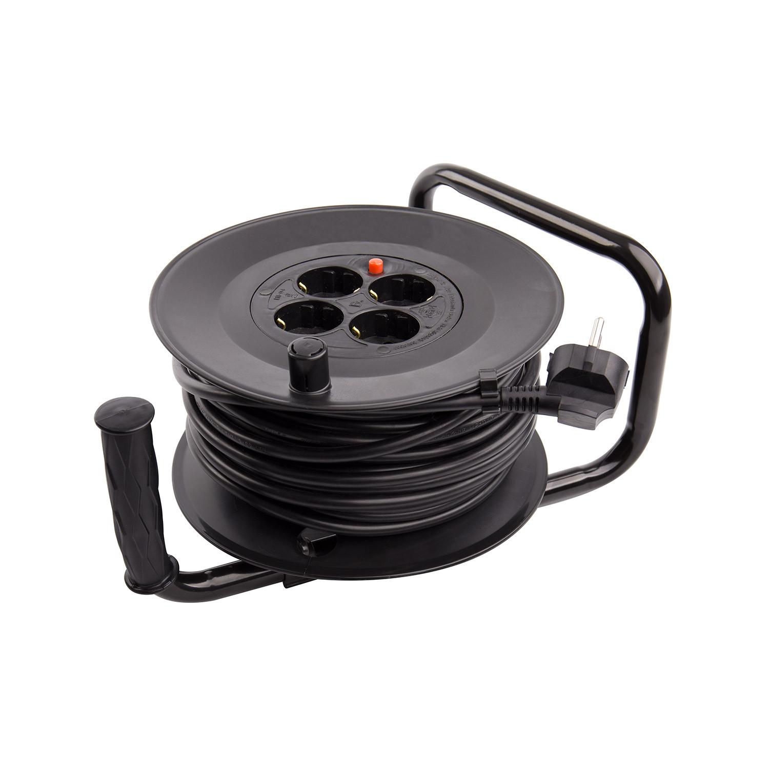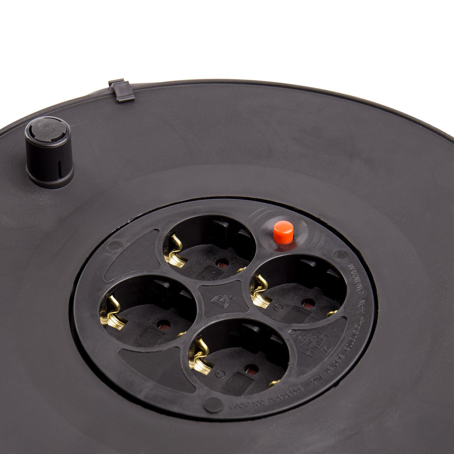 El Carrete Alargador de Cable de 25 metros y sección 3x1.5 mm es la solución perfecta para extender la conexión eléctrica en interiores con total seguridad. Su cable de alta calidad, recubierto en PVC resistente, soporta una potencia máxima de 3200 W y una intensidad de corriente de 16 amperios, garantizando un rendimiento óptimo. Equipado con cuatro enchufes protegidos y un práctico botón de seguridad, este alargador facilita el uso simultáneo de varios dispositivos. Su estructura robusta en color negro incluye un cómodo asa para un manejo sencillo y un diseño que facilita el enrollado y desenrollado del cable. Certificado bajo normas CE, RoHS y TÜV, cuenta con una garantía de 3 años, asegurando durabilidad y confianza.