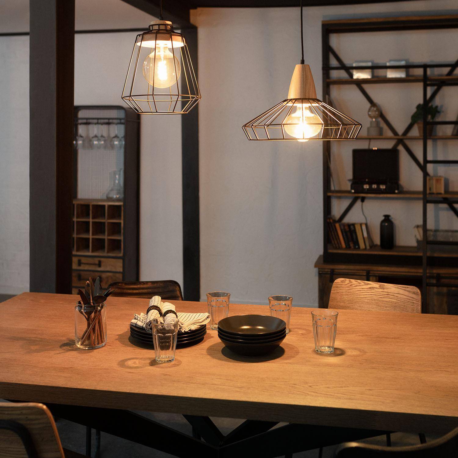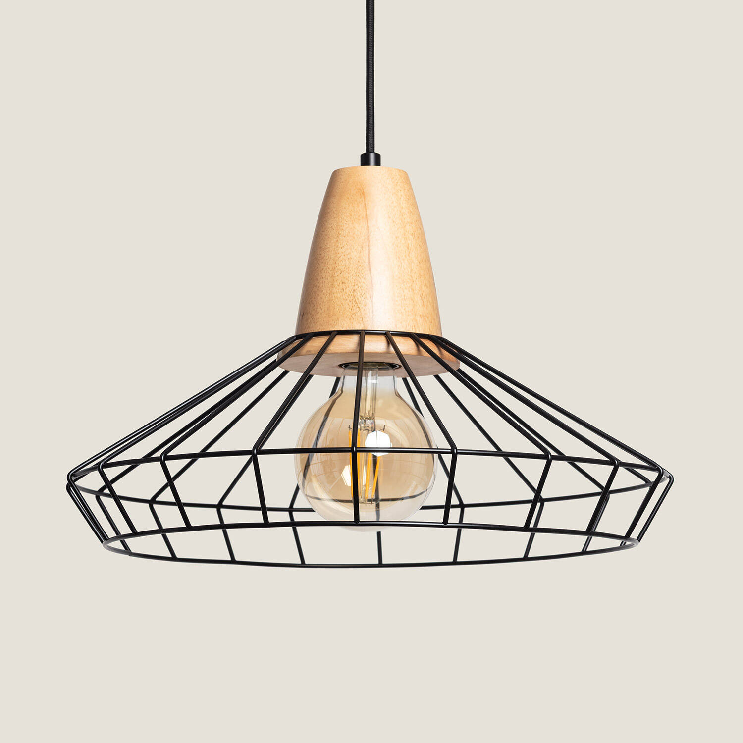 La lámpara colgante Metal Keler destaca por su diseño industrial y elegante, combinando madera natural y estructura metálica negra en forma de jaula. Ideal para ambientes interiores, aporta un toque moderno y cálido a cualquier estancia, desde comedores hasta espacios de trabajo. Su casquillo E27 permite elegir la bombilla que mejor se adapte a tus necesidades (no incluida). Soporta una potencia máxima de 20 W y funciona en un rango de temperatura de -20 °C a 50 °C, garantizando durabilidad y eficiencia. Con certificaciones CE, RoHS y UKCA, y protección IP20 e IK02, ofrece seguridad y calidad. Además, cuenta con 3 años de garantía para tu tranquilidad.