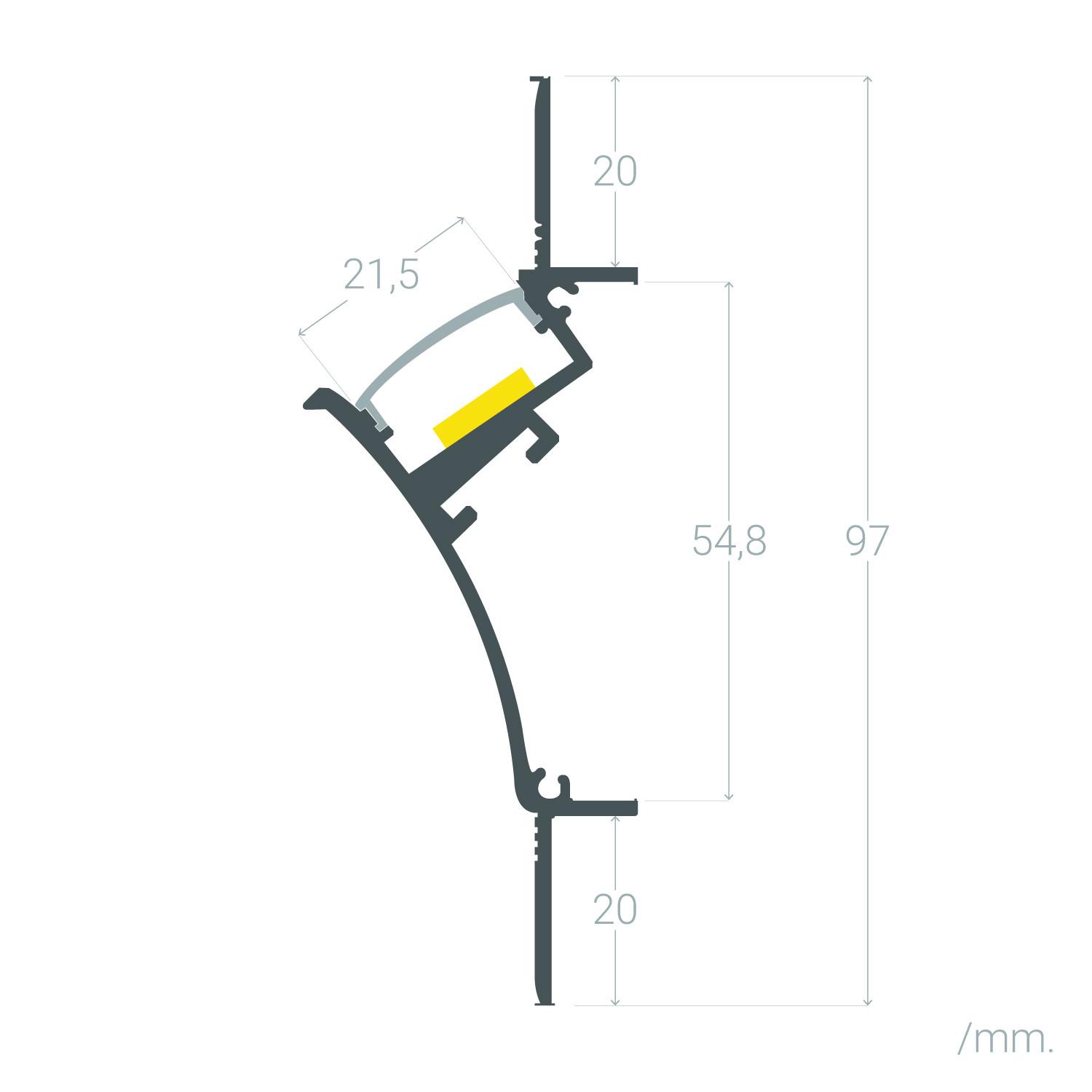 Perfil Aluminio Empotrable para Escayola / Pladur para Tira LED hasta 20mm con Tapa Continua