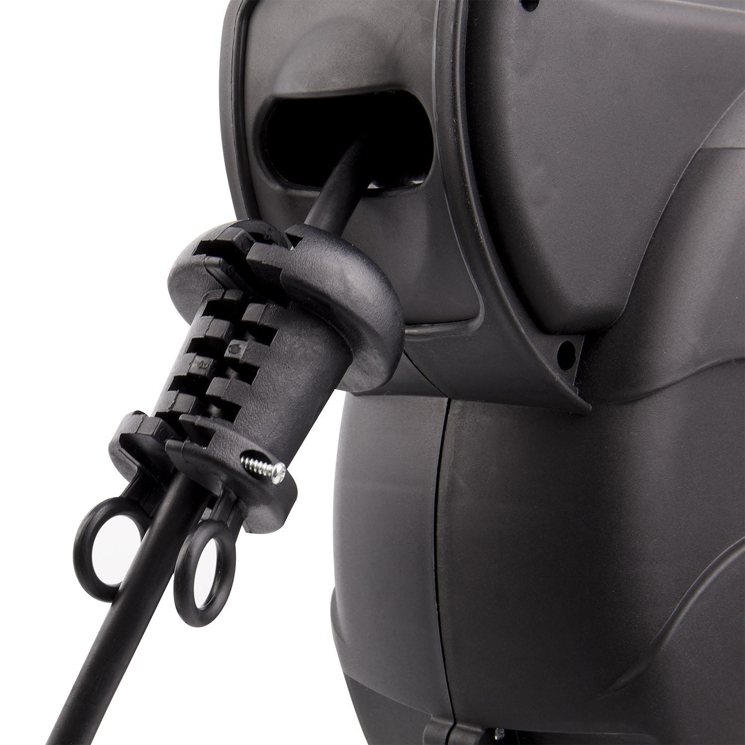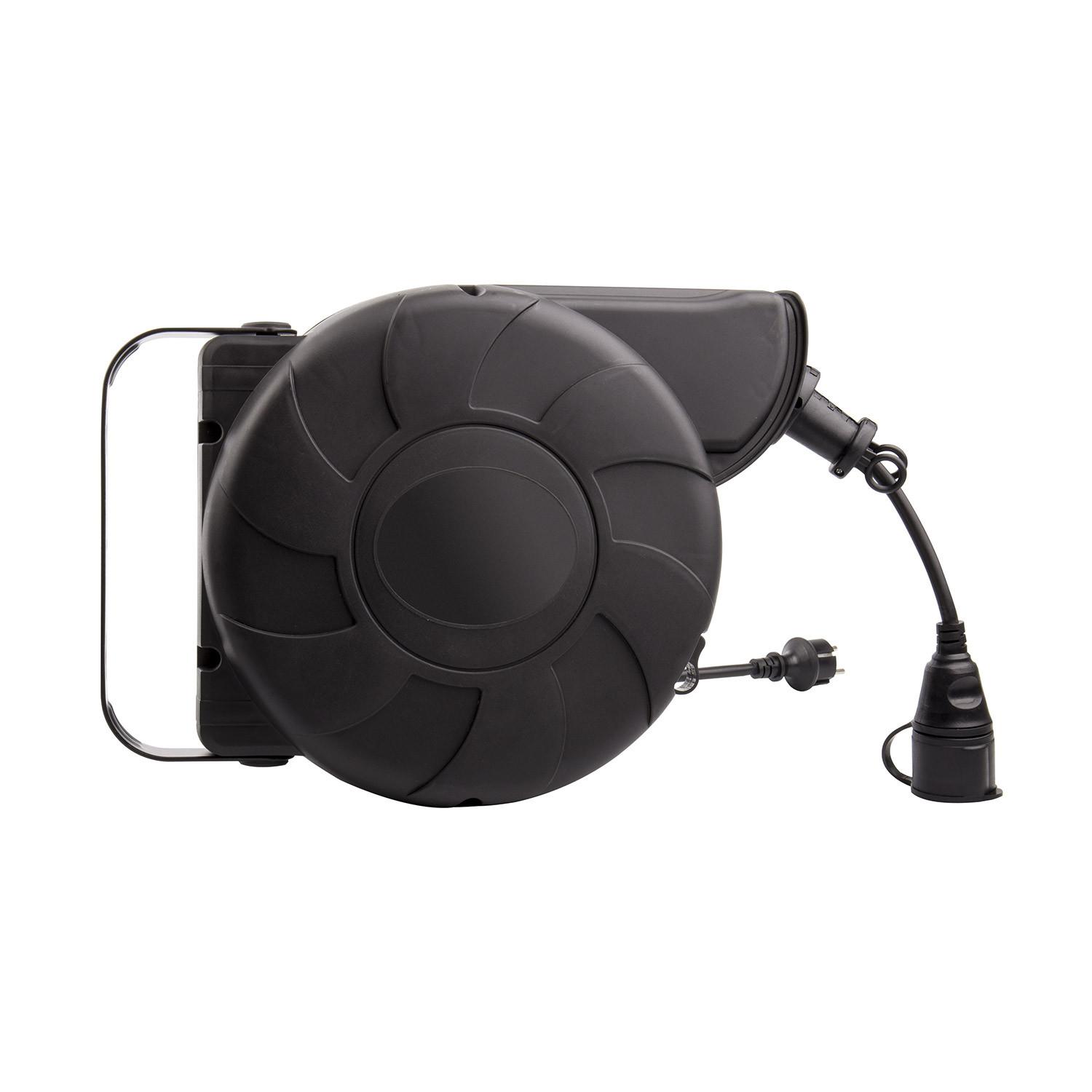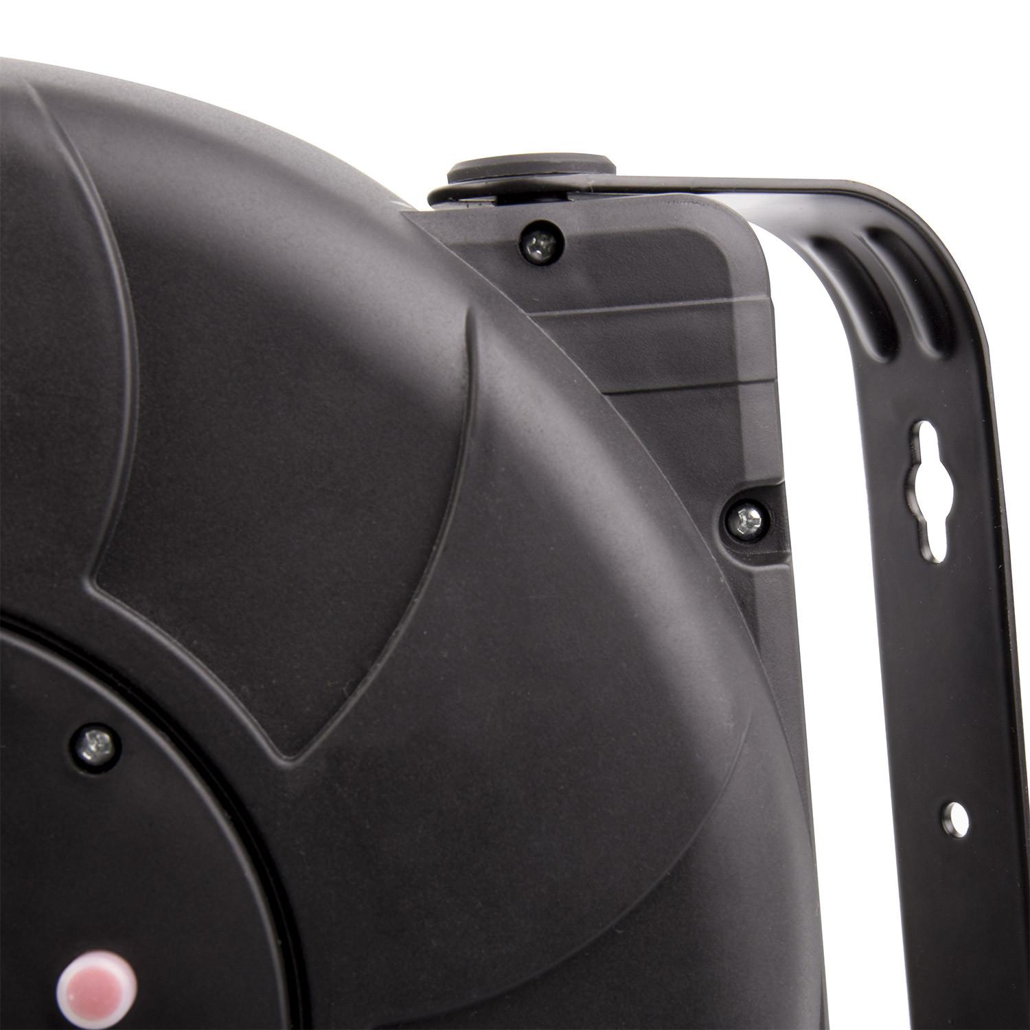 El carrete de cable rebobinado automático de 11 metros más 2 metros adicionales es la solución perfecta para mantener el orden y la seguridad en tus instalaciones eléctricas. Diseñado para montaje en pared, cuenta con protección IP44 que garantiza su resistencia frente a salpicaduras y polvo, ideal tanto para uso en interior como exterior. Su cable de 3 conductores y sección de 1.5 mm² soporta una intensidad de corriente de 16 A y una potencia máxima de 3500 W. Fabricado en PVC negro resistente, este carrete está certificado bajo normas CE, RoHS y TÜV, y ofrece una garantía de 3 años. Su sistema de rebobinado automático facilita el manejo y almacenamiento del cable, aportando comodidad y eficiencia en cualquier espacio.