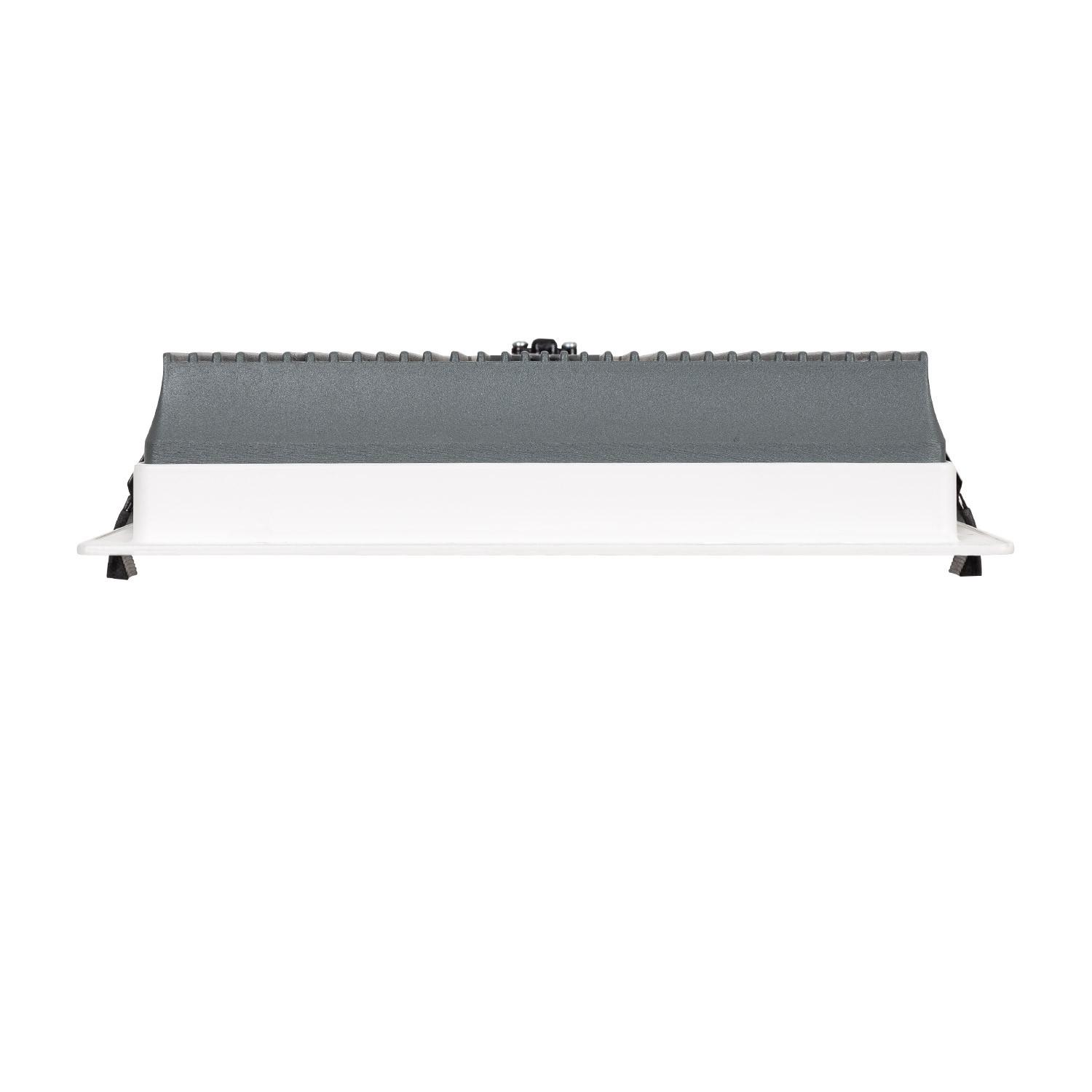 Este downlight LED cuadrado de 30W de la serie Aero, equipado con chips Samsung SMD2835, ofrece una alta eficiencia luminosa de 130 lm/W y una luminosidad de 3600 lúmenes en luz blanco neutro (4000K). Su diseño microprismático con difusor opal minimiza el deslumbramiento (UGR 17), proporcionando un confort visual óptimo para entornos profesionales y comerciales. Fabricado en aluminio con protección IP44, garantiza durabilidad y una excelente disipación térmica. Ideal para empotrar en techos falsos con corte estándar de 210x210 mm, soporta temperaturas de trabajo entre -10 °C y 45 °C. Con un índice de reproducción cromática CRI 85 y una vida útil aproximada de 50.000 horas, este downlight es una solución eficiente, fiable y estética para oficinas, clínicas, tiendas y espacios institucionales.
