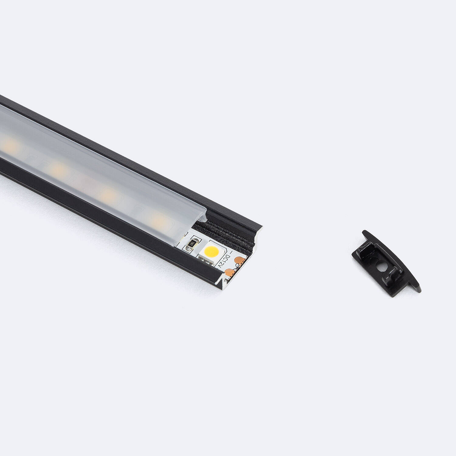 El Perfil de Aluminio Empotrable Lithos H12 es la solución ideal para iluminar espacios interiores con tiras LED de hasta 12 mm de ancho. Fabricado en aluminio robusto y equipado con una tapa continua semi-transparente de policarbonato (PC), garantiza una difusión uniforme de la luz, evitando deslumbramientos. Su acabado en color negro aporta un toque moderno y discreto, integrándose fácilmente en cualquier ambiente. Diseñado para empotrar, permite una instalación limpia y elegante en muebles, estanterías o techos. Además, cuenta con certificación RoHS y una garantía de 3 años, asegurando calidad y durabilidad. Incluye tapa superior para proteger la tira LED y optimizar su rendimiento lumínico. Perfecto para crear ambientes cálidos y sofisticados.