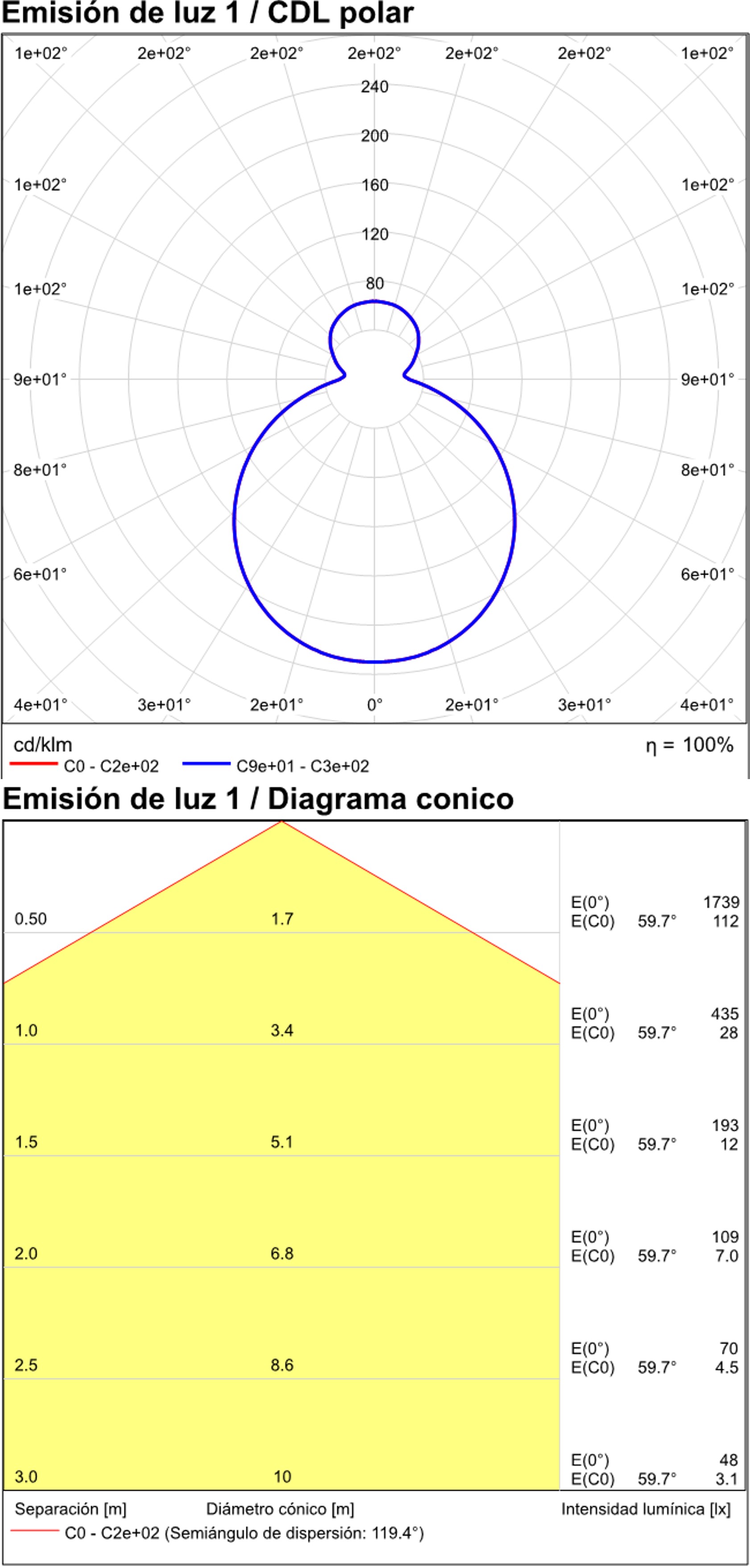 Especificaciones y datos fotométricos