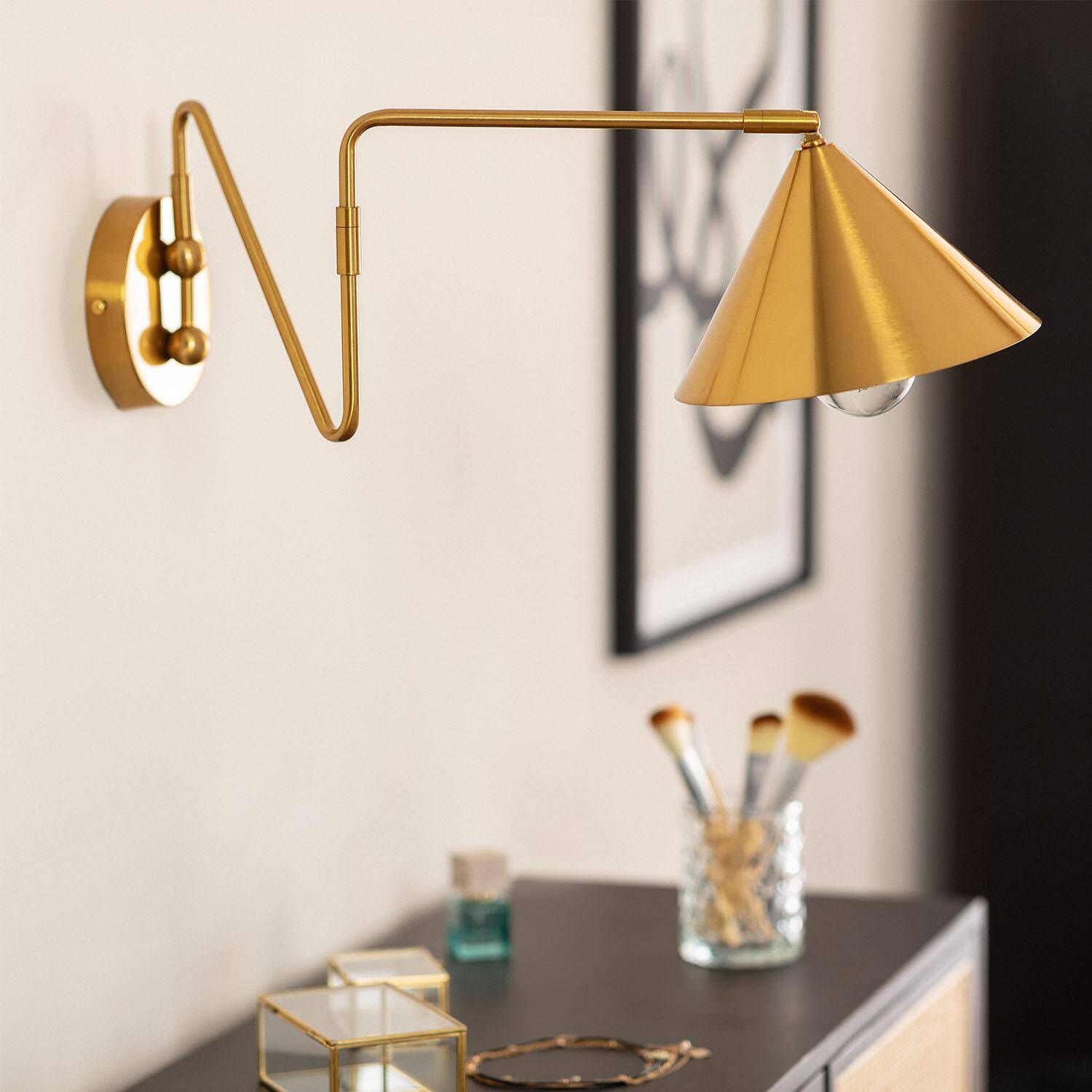 La lámpara de pared articulable Metal Cyclone destaca por su diseño elegante y funcional en acabado dorado metálico. Fabricada en metal resistente, incorpora un brazo articulado que permite ajustar la dirección de la luz según tus necesidades, aportando versatilidad y estilo a cualquier espacio interior. Compatible con bombillas E27 de hasta 40 W (no incluidas), ofrece una iluminación focalizada ideal para ambientes como salones, dormitorios o zonas de lectura. Su instalación en superficie es sencilla y segura, con certificaciones CE, RoHS y UKCA que garantizan calidad y cumplimiento normativo. Soporta temperaturas de -20 °C a 50 °C y cuenta con una protección IP20, perfecta para interiores. Además, incluye 3 años de garantía para tu tranquilidad.