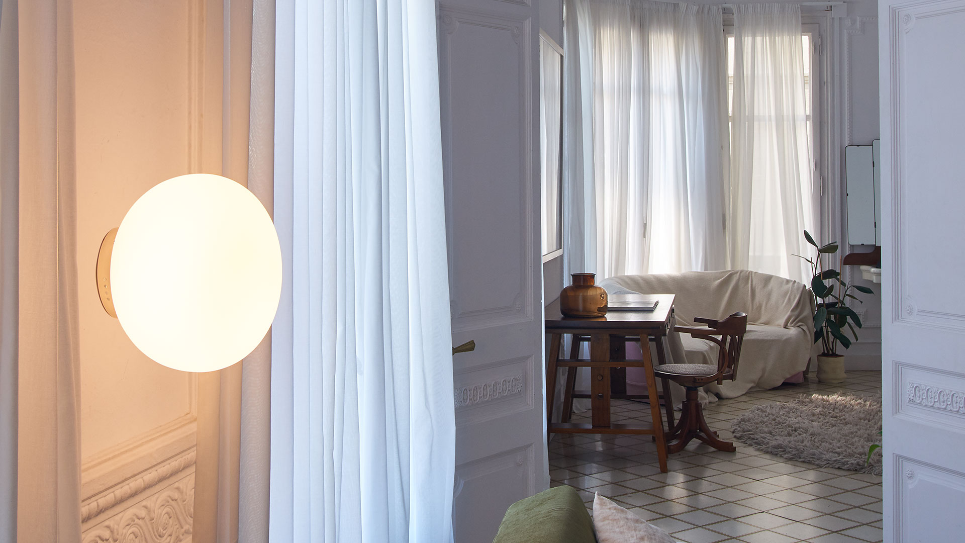 La colección Moon con su globo de cristal inspirado en el diseño vintage se fabrica en dos formatos y en diferentes medidas y acabados. Se trata de una pieza muy versátil y apropiada tanto para uso doméstico como para proyectos de restauración.