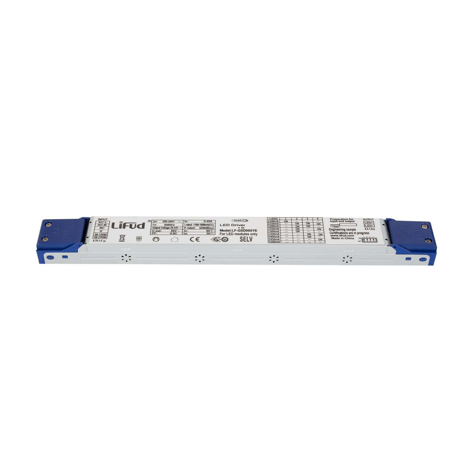 Driver LIFUD Regulable DALI 220-240V No Flicker Salida 25-42V 1100-1500mA 46-63W LF-GSD060YE