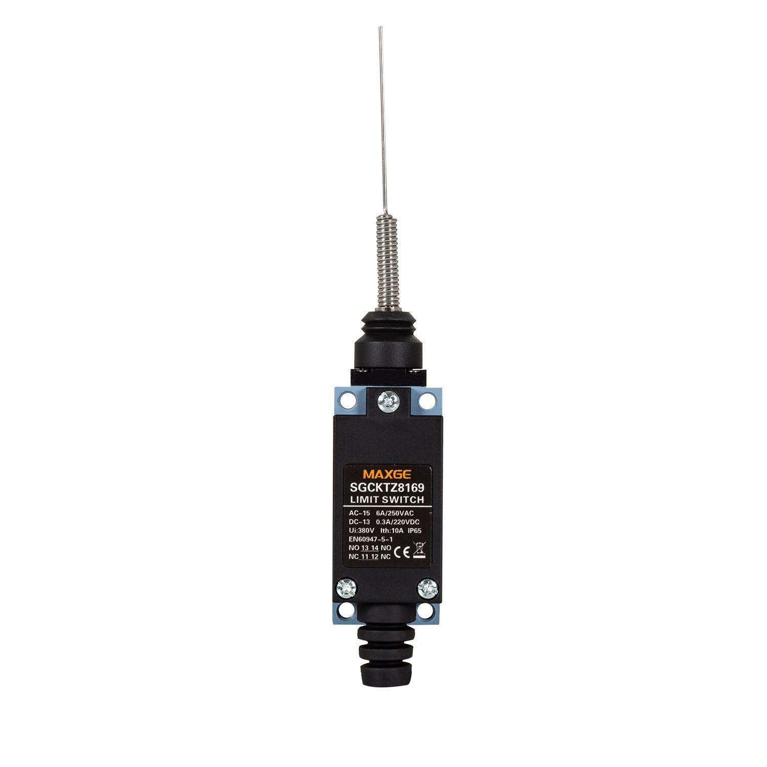 El Final de Carrera MAXGE de Varilla Fina Flexible Metálica es un interruptor de formato miniatura diseñado para aplicaciones industriales y domésticas, tanto en interior como en exterior. Su varilla metálica flexible permite detectar movimientos con precisión, garantizando un control fiable y seguro. Cuenta con protección IP65, lo que lo hace resistente al polvo y a chorros de agua, ideal para ambientes exigentes. Dispone de contactos 1NC + 1NO y soporta una tensión nominal de 90-264V AC. Certificado bajo normas CE, RoHS y UKCA, ofrece una garantía de 3 años, asegurando durabilidad y calidad. Su diseño compacto y robusto facilita su instalación y uso en diversos mecanismos de control y automatización.
