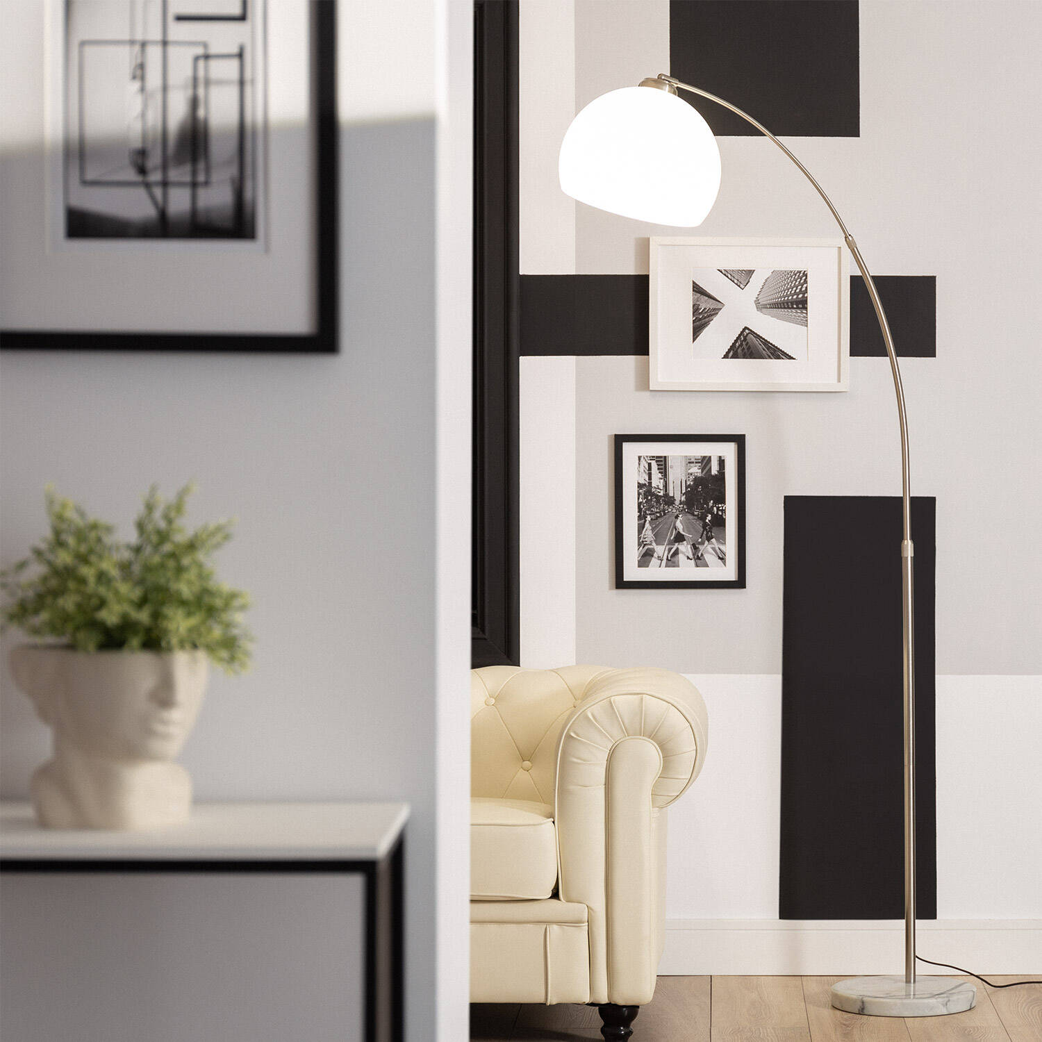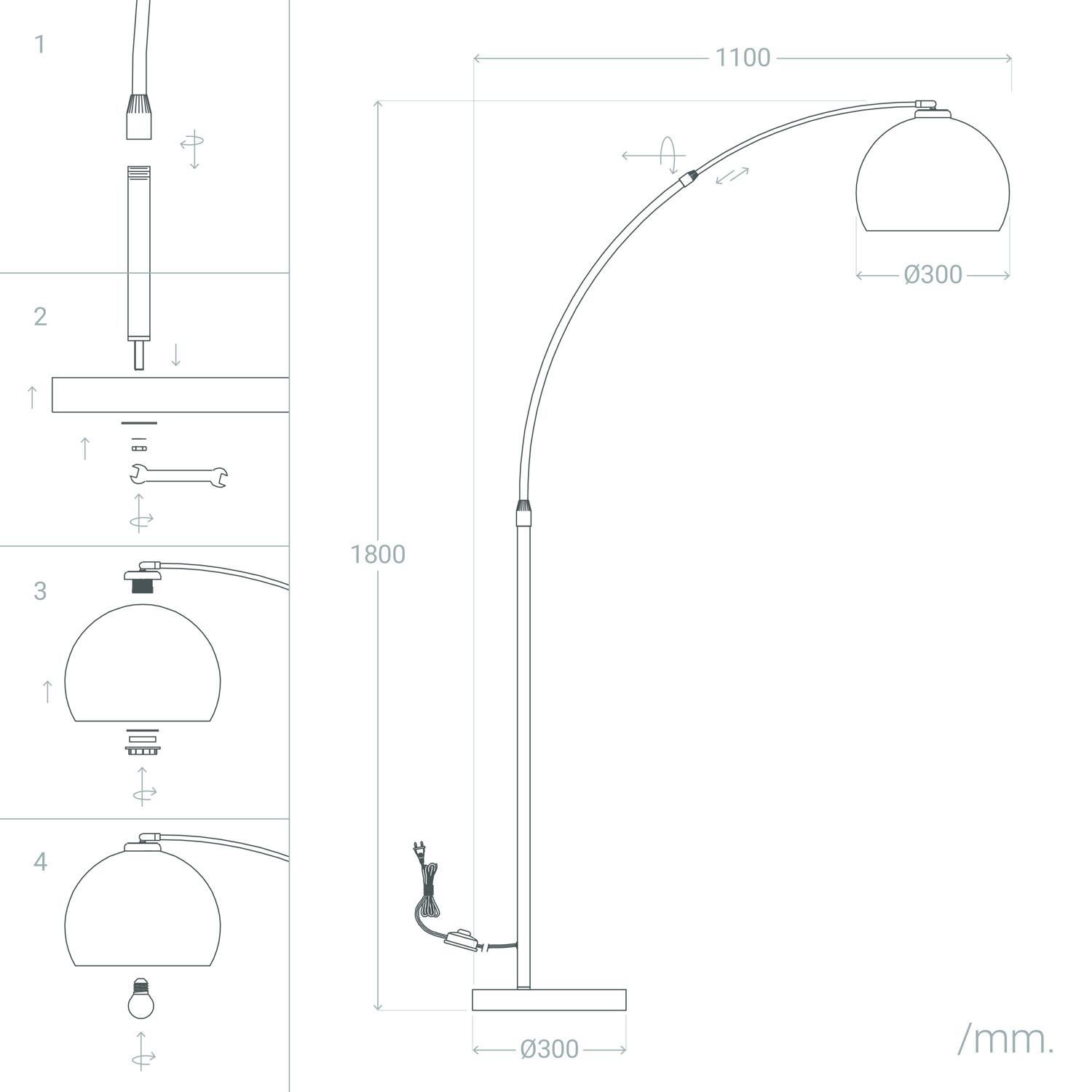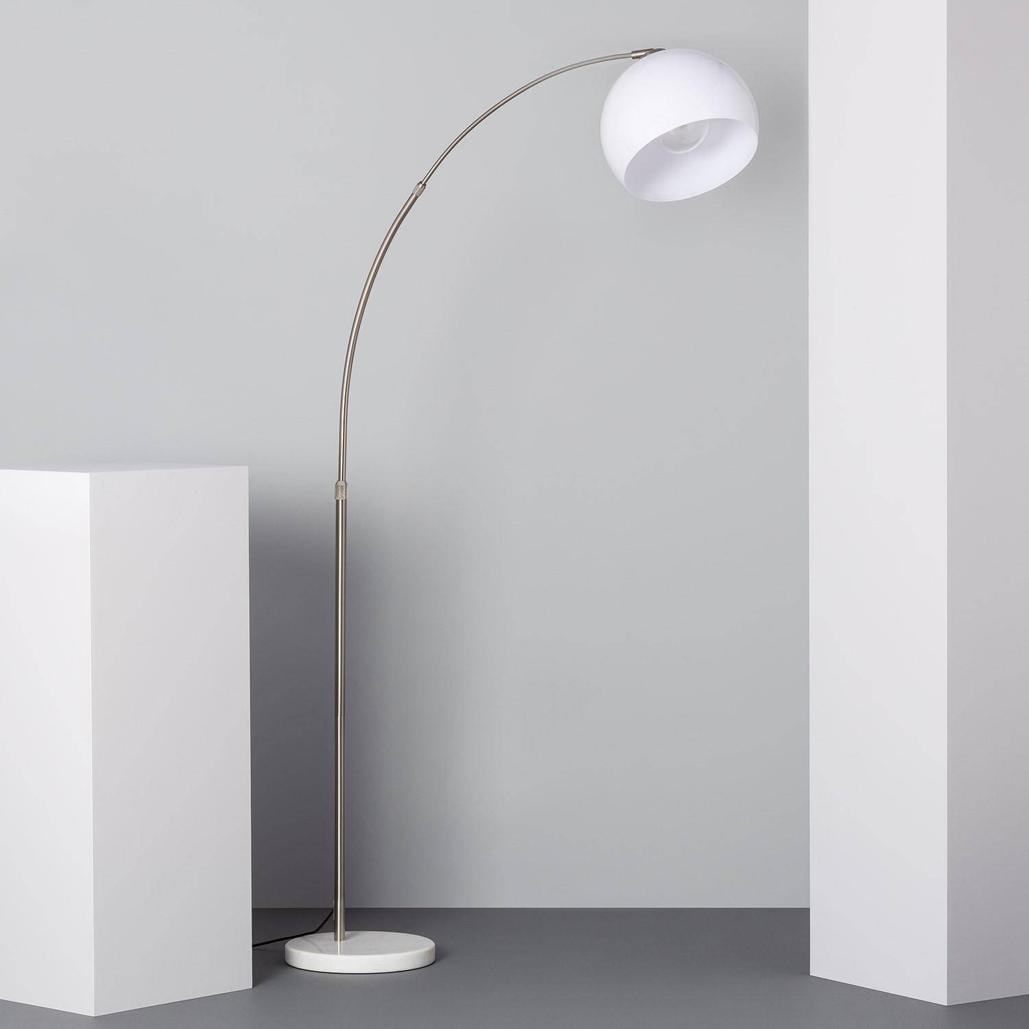La lámpara de pie Gebogen destaca por su diseño elegante y moderno, ideal para cualquier espacio interior. Su estructura combina acero plateado con una base de mármol, aportando estabilidad y un toque sofisticado. La pantalla esférica blanca, fabricada en PVC, difunde la luz de manera suave y agradable. Compatible con bombillas E27 de hasta 40 W (no incluidas), esta lámpara ofrece funcionalidad y estilo en uno. Su arco curvado permite una iluminación dirigida, perfecta para salones o zonas de lectura. Certificada con CE, RoHS y UKCA, garantiza calidad y seguridad. Además, su protección IP20 la hace apta para interiores, con una durabilidad respaldada por 3 años de garantía. Un complemento ideal para ambientes contemporáneos.