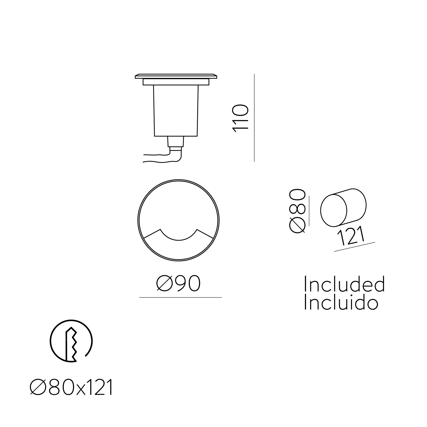 Indus Empotrable 2065/9 1 Dirección Aluminio ADC12, LED GU10 8W, CL.I IP67