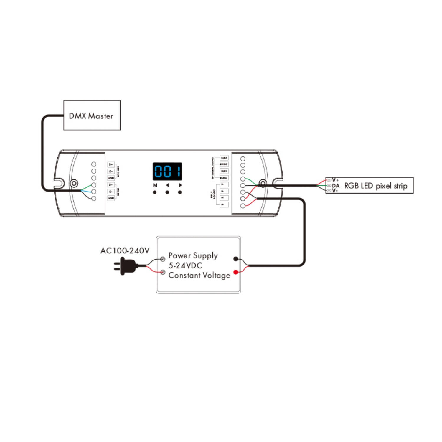 Controlador DMX para Tira LED Digital SPI RGB/RGBW 5-24 V DC