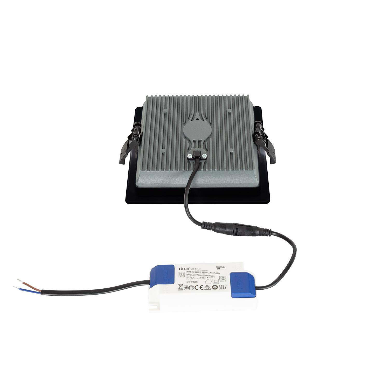 Downlight LED 15W Cuadrado SAMSUNG Aero 130 lm/W Microprismático LIFUD Corte 135x135 mm Negro
