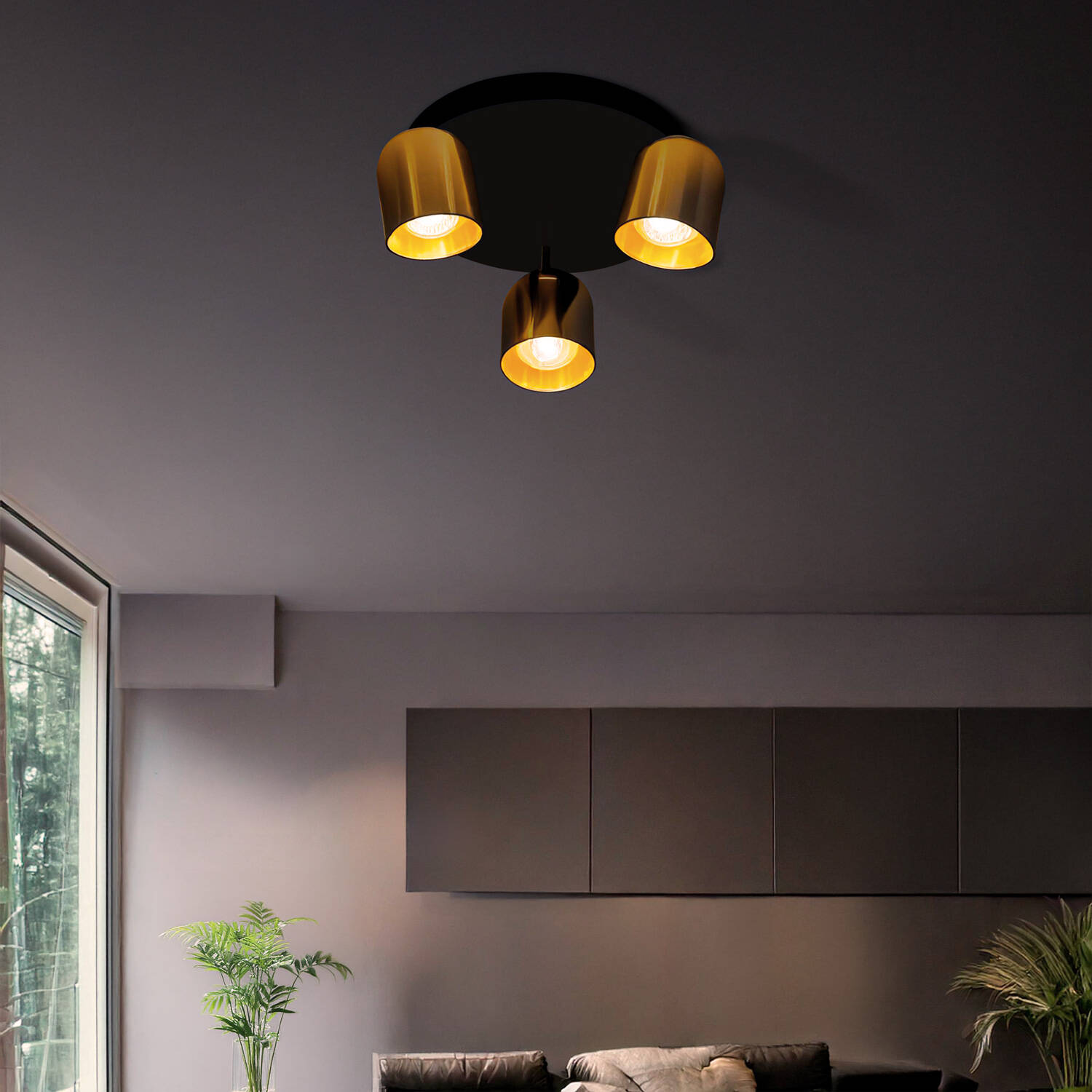 La lámpara de techo circular orientable Caleb combina estilo y funcionalidad con un diseño moderno en aluminio dorado. Cuenta con tres focos orientables que permiten dirigir la luz hacia donde más se necesite, aportando versatilidad a cualquier estancia interior. Su instalación en superficie facilita su montaje en techos, adaptándose a diferentes ambientes. Funciona con bombillas GU10 (no incluidas) y soporta una potencia máxima de 10 W. Certificada con CE y RoHS, garantiza calidad y seguridad. Ideal para espacios que requieren una iluminación focalizada y elegante, su acabado en dorado aporta un toque sofisticado y contemporáneo. Además, soporta temperaturas de trabajo entre -20 °C y 50 °C, asegurando durabilidad y rendimiento.