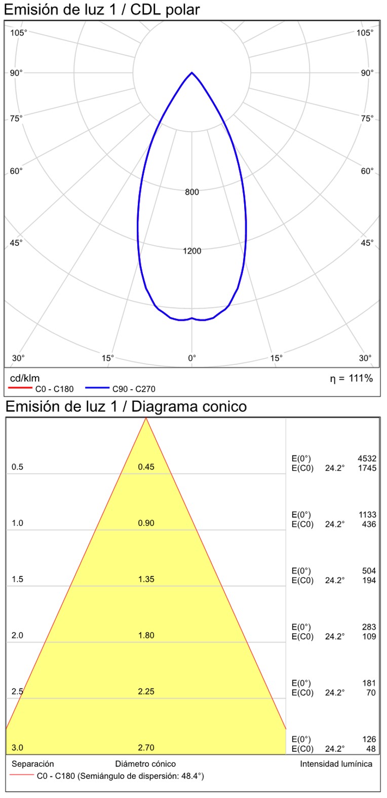 Especificaciones y datos fotométricos