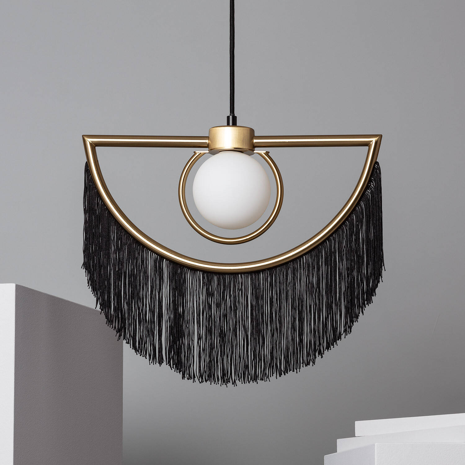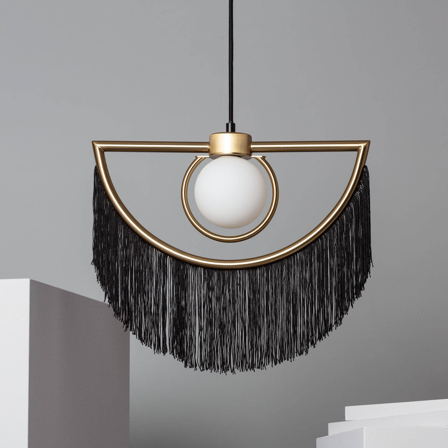 La lámpara colgante Dalila combina elegancia y estilo bohemio con un diseño único en metal negro y flecos textiles que aportan movimiento y sofisticación. Su estructura semicircular en acabado metálico dorado resalta la bombilla central (casquillo G9, no incluida), creando un punto de luz ideal para interiores. Perfecta para ambientes modernos y con personalidad, esta lámpara se adapta a temperaturas de -20 °C a 50 °C y cuenta con protección IP20, garantizando durabilidad y seguridad. Su instalación colgante aporta un toque artístico y acogedor a salones, comedores o espacios de lectura, destacando por su originalidad y calidad certificada (CE, RoHS, UKCA). Incluye 3 años de garantía para mayor tranquilidad.