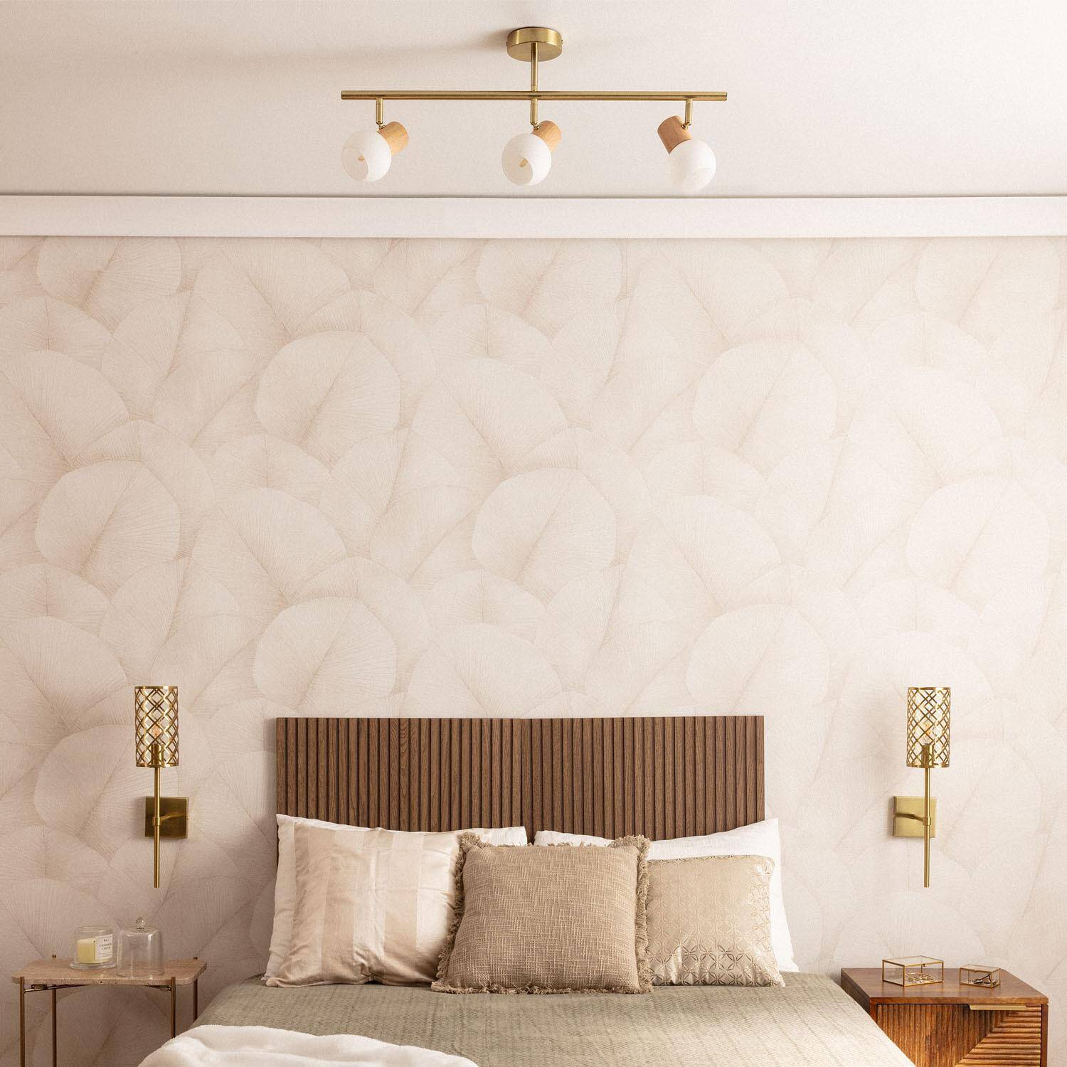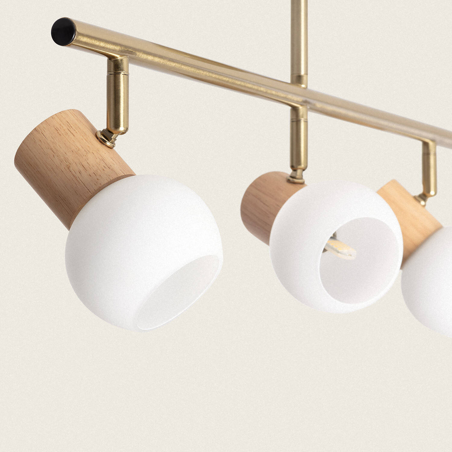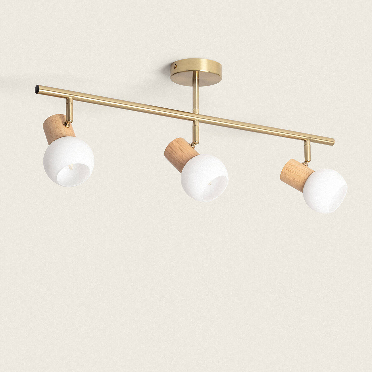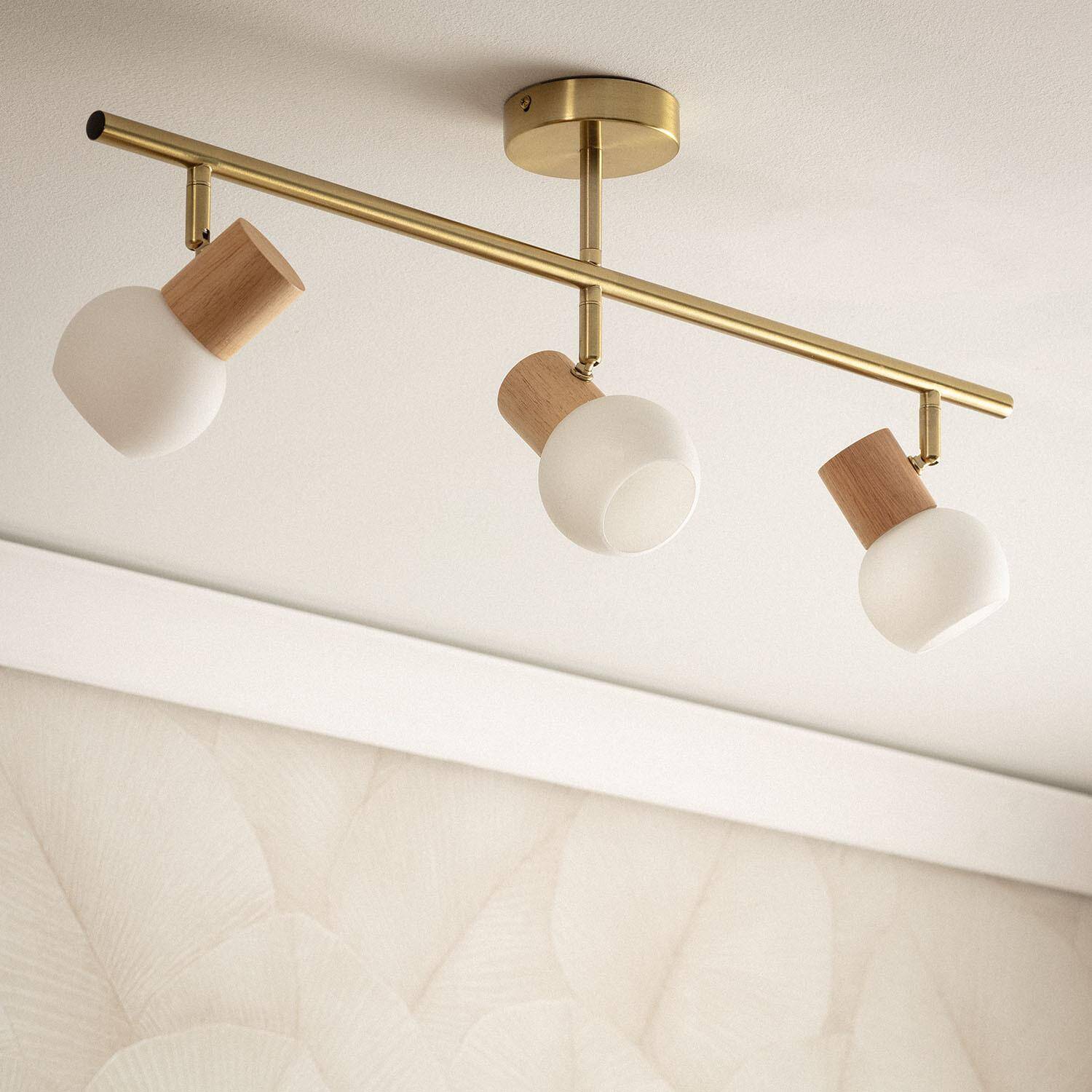 La lámpara de techo Alan con 3 focos combina elegancia y funcionalidad en un diseño moderno. Fabricada en metal dorado, aporta un toque sofisticado y cálido a cualquier estancia interior. Sus tres puntos de luz con casquillo G9 permiten dirigir la iluminación de forma personalizada, ideal para salones, dormitorios o zonas de trabajo. Los difusores de cristal mate junto con detalles en madera natural realzan su estilo contemporáneo, creando un ambiente acogedor. Su instalación en superficie es sencilla y segura, certificada con CE y RoHS. Además, soporta temperaturas de -20 °C a 50 °C y cuenta con protección IP20 e IK02, garantizando durabilidad y resistencia. Incluye garantía de 3 años, aunque las bombillas no están incluidas.