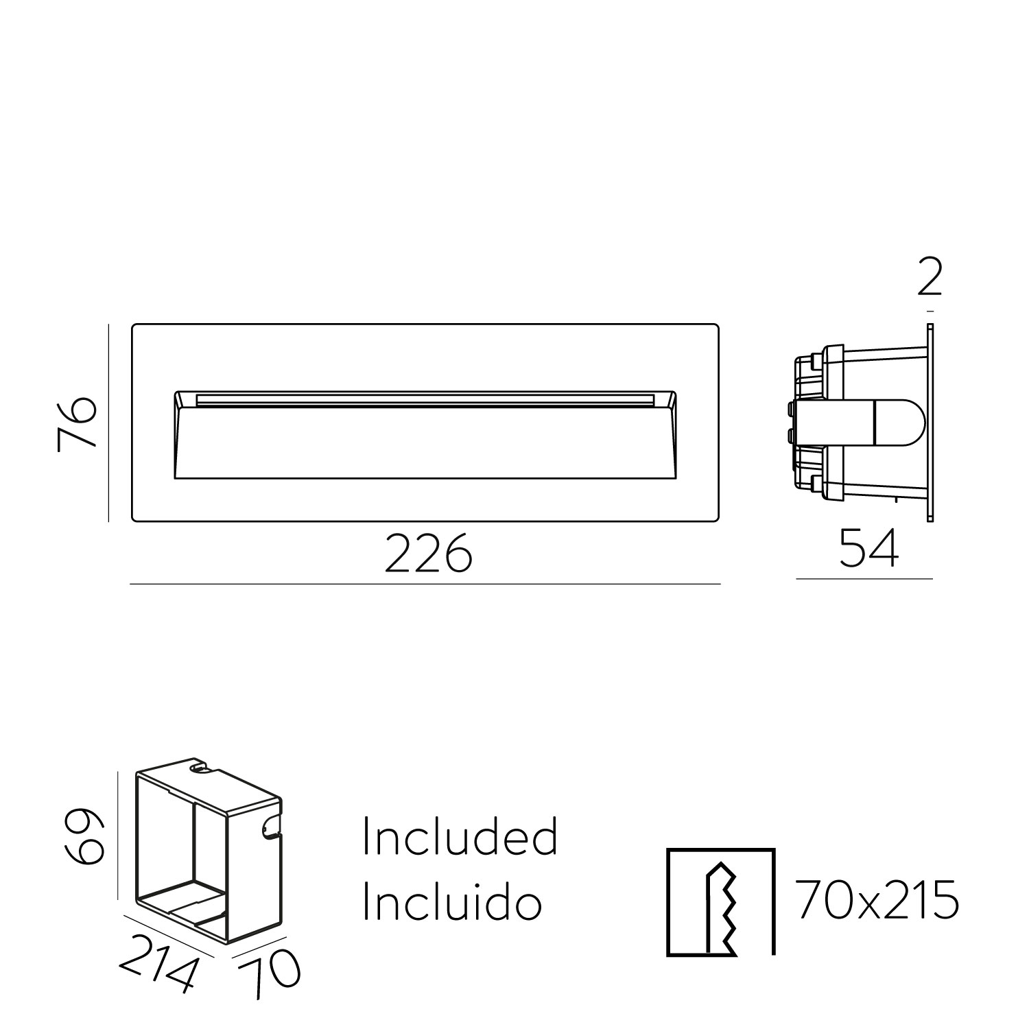 Dimensioneslength: 76mm, width: 226mm, height: 72mm