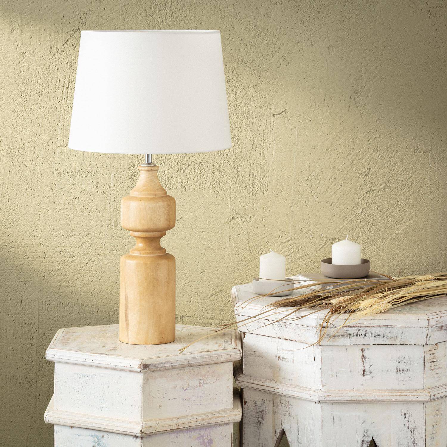 La lámpara de mesa Madera Sansa ILUZZIA es una pieza elegante y funcional que combina la calidez natural de la madera con la suavidad de una pantalla de tela en color blanco viejo. Su diseño sencillo y atemporal aporta un toque de sofisticación y armonía a cualquier espacio interior, ideal para salones, dormitorios o zonas de lectura. Compatible con bombillas E27 de hasta 40W (no incluidas), ofrece versatilidad para ajustar la iluminación según tus necesidades. Cuenta con interruptor integrado para un uso cómodo y está certificada con CE, RoHS y UKCA, garantizando calidad y seguridad. Su acabado en madera natural aporta un estilo cálido y acogedor, perfecto para ambientes modernos y rústicos. Además, incluye garantía de 3 años.