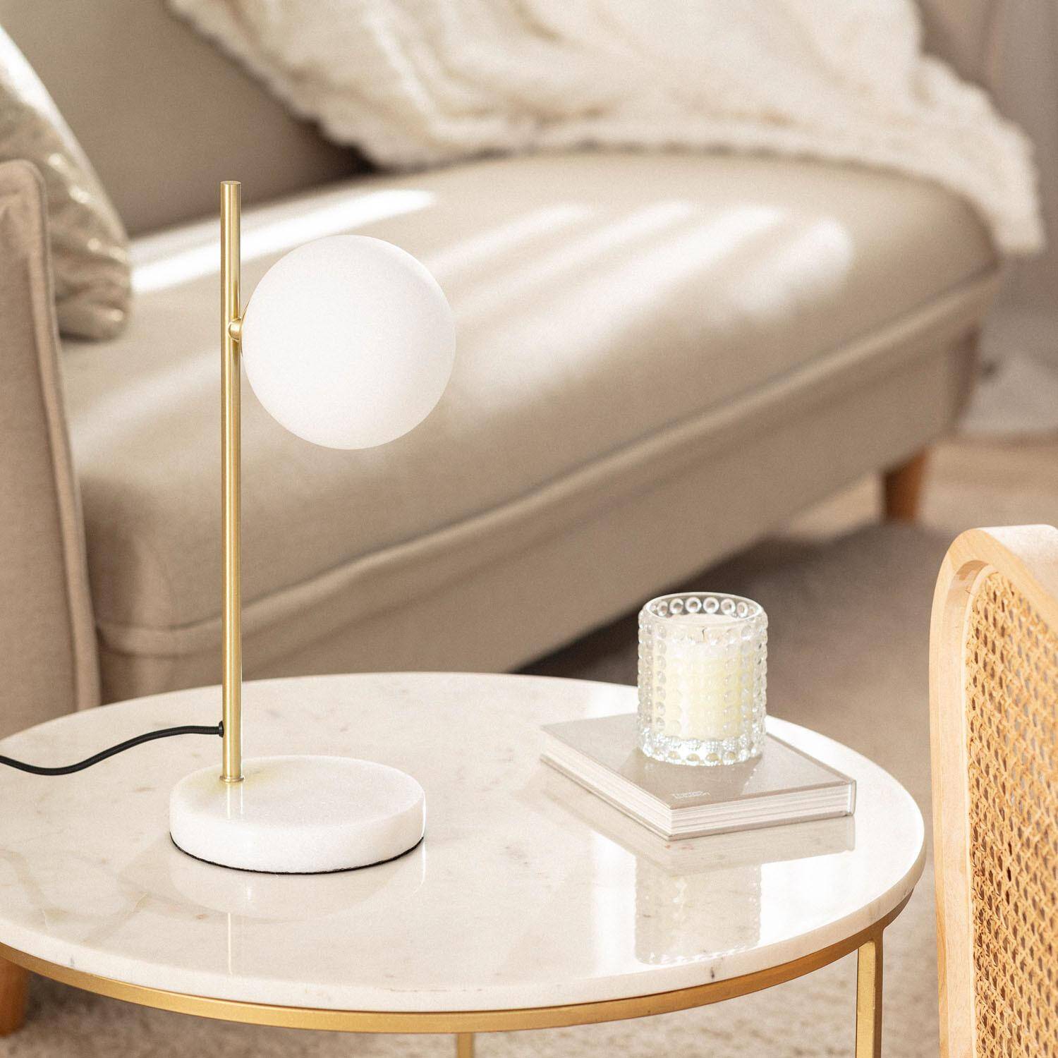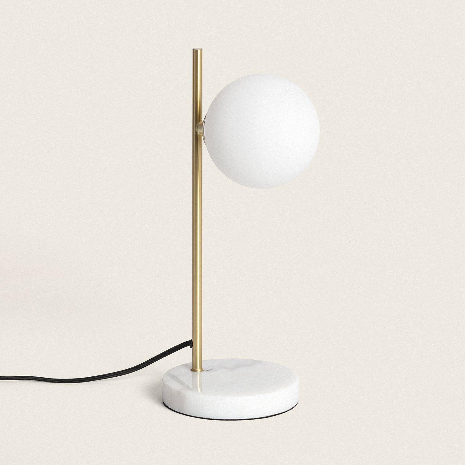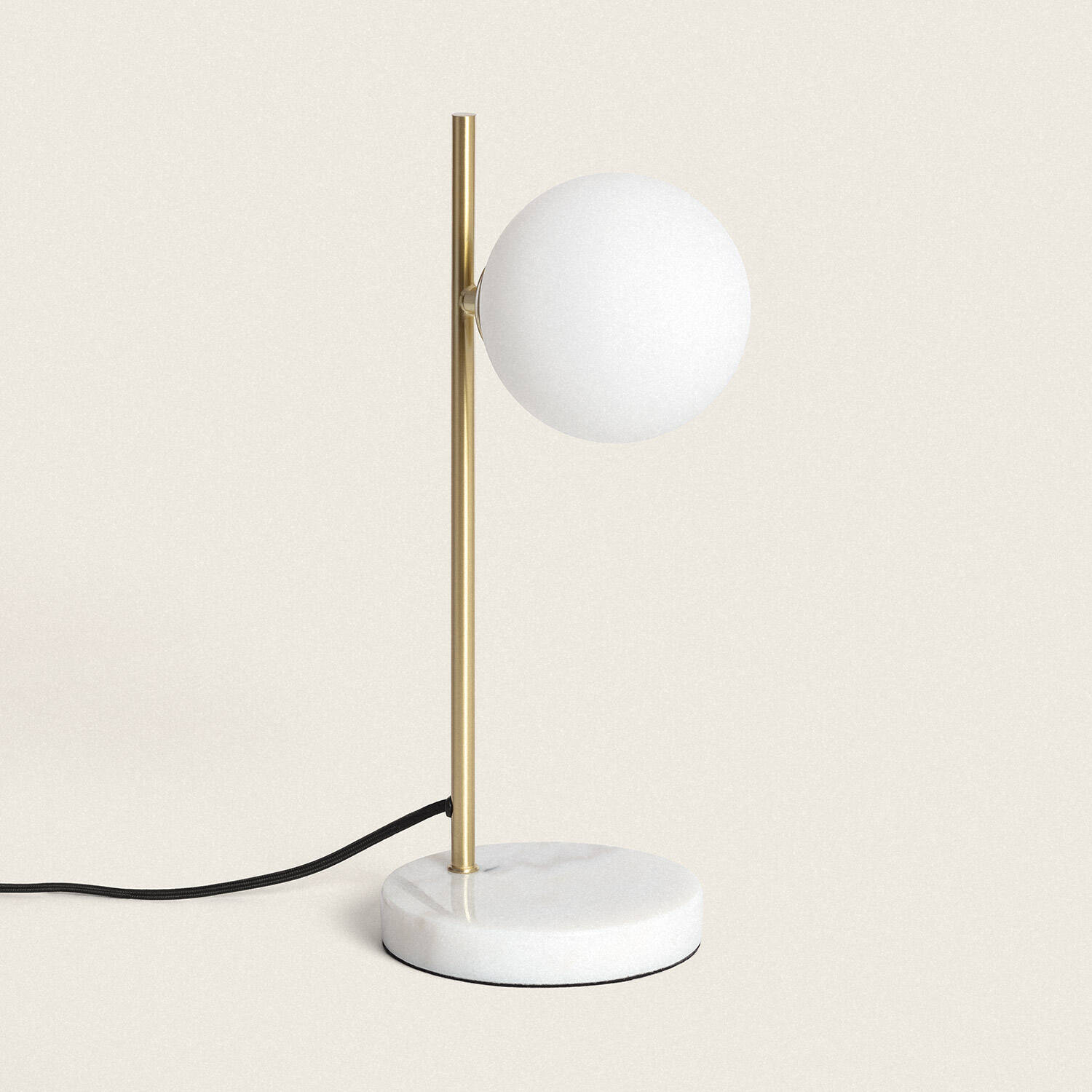 La lámpara de mesa Lune combina elegancia y funcionalidad con un diseño moderno y minimalista. Su estructura en metal dorado se complementa con una base de mármol blanco, aportando estabilidad y un toque sofisticado. La pantalla esférica de cristal opalino difunde la luz de forma suave y homogénea, ideal para crear ambientes cálidos en interiores. Cuenta con un casquillo G9 para bombillas no incluidas y un práctico interruptor integrado. Apta para funcionar en rangos de temperatura entre -20 °C y 50 °C, esta lámpara es perfecta para salones, dormitorios o espacios de trabajo que requieran un punto de luz discreto y decorativo. Además, su certificación CE, RoHS y UKCA garantizan calidad y seguridad.