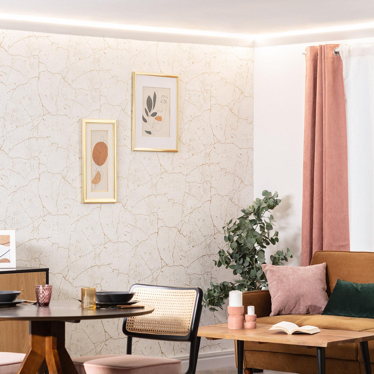 La Moldura para Tira LED 2m Diagonal Modern es la solución ideal para integrar iluminación LED de forma elegante y funcional en interiores. Fabricada en poliestireno (PS) blanco, ofrece un acabado moderno y limpio que se adapta perfectamente a cualquier estilo decorativo. Su diseño diagonal permite una instalación en superficie que realza la luz indirecta, creando ambientes cálidos y acogedores. Compatible con tiras LED, protege y oculta la instalación eléctrica, aportando orden y estética. Certificada bajo la norma RoHS y con una garantía de 3 años, garantiza calidad y durabilidad. Perfecta para salones, pasillos o cualquier estancia que requiera una iluminación sutil y sofisticada, esta moldura combina practicidad y diseño contemporáneo.