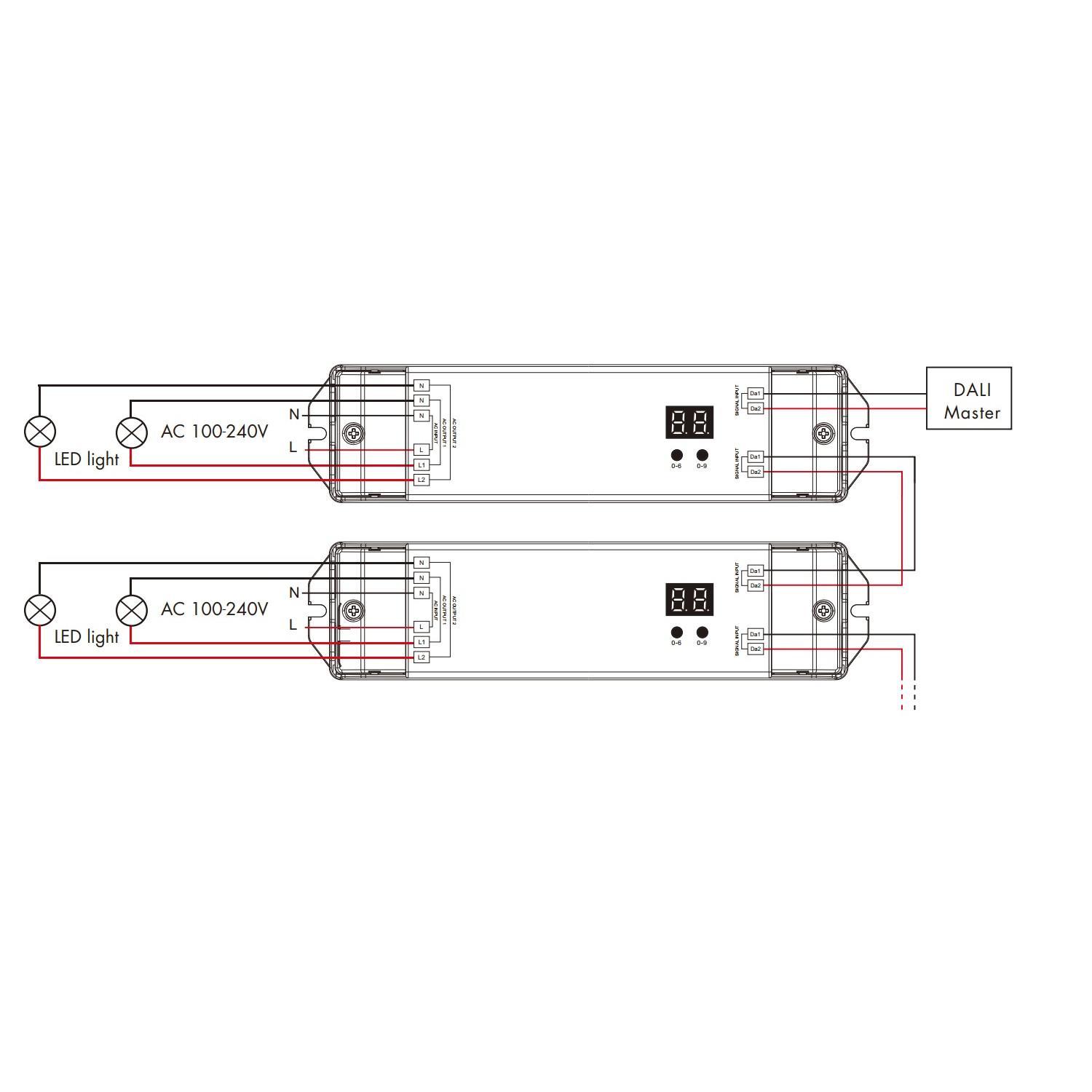 El Interruptor DALI-2 ON/OFF 5A es un dispositivo compacto y eficiente diseñado para el control de iluminación interior mediante protocolo DALI. Soporta una corriente máxima de salida de 5 amperios y una potencia máxima de 1200 W, operando en un rango de tensión de 220-240V AC y frecuencia de 50-60 Hz. Fabricado en material PC de color blanco, cuenta con certificaciones CE y RoHS, garantizando calidad y seguridad. Su rango de temperatura de trabajo va desde -20 °C hasta 50 °C, ideal para diversas condiciones ambientales. Con protección IP20 y una garantía de 5 años, este interruptor ofrece fiabilidad y durabilidad para instalaciones profesionales que requieren un control preciso y sencillo de sistemas de iluminación DALI.