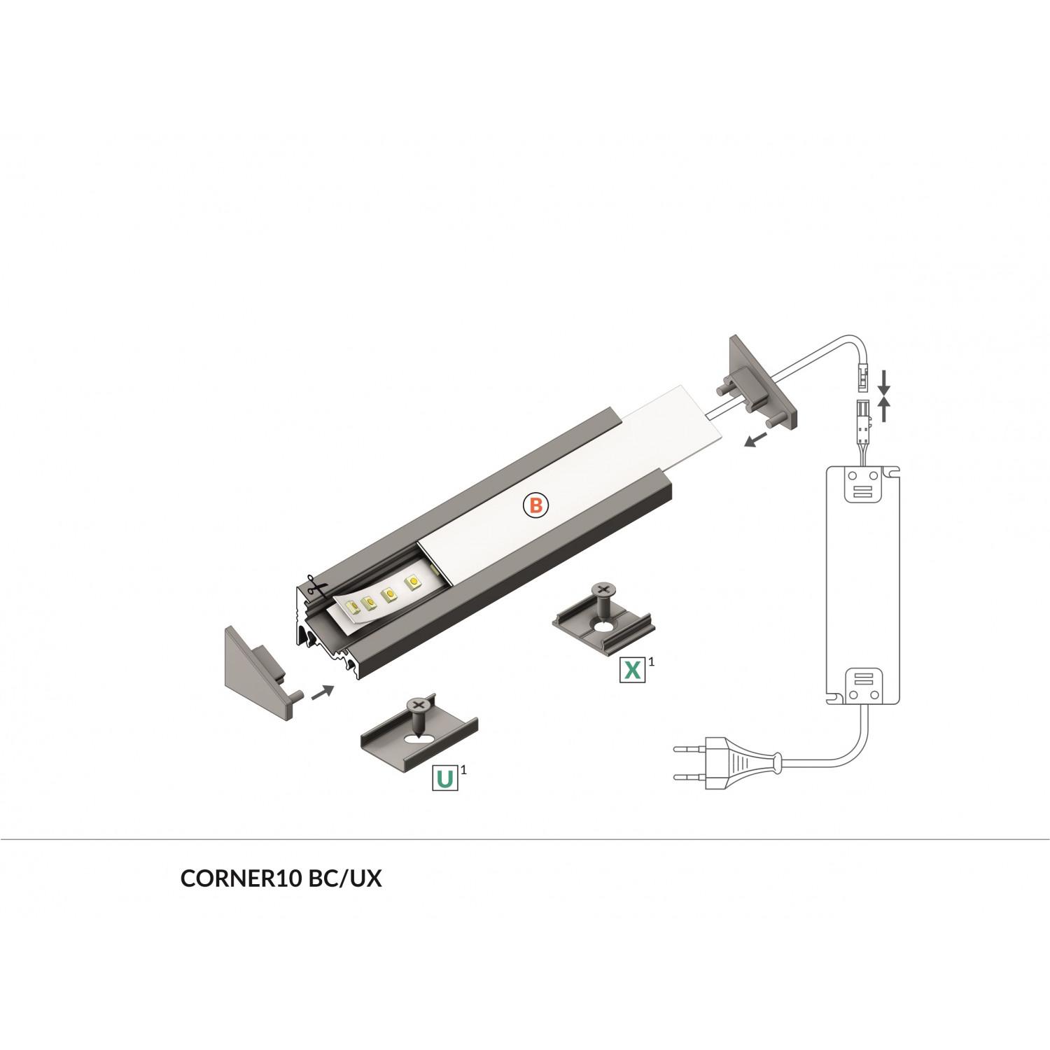 Perfil de aluminio esquina variable de 1 metro, diseñado para la instalación de tiras LED de hasta 10 mm de ancho. Su estructura en aluminio gris garantiza durabilidad y resistencia, ideal para uso en interiores y montaje en superficie. Este perfil permite una iluminación elegante y funcional en esquinas, facilitando una integración discreta y profesional de las tiras LED. Incluye accesorios como tapa traslúcida para una difusión uniforme de la luz. Certificado con RoHS y con garantía de 3 años, ofrece calidad y seguridad en cada instalación. Perfecto para proyectos que buscan combinar estética y eficiencia en iluminación LED, aportando un acabado moderno y limpio en cualquier espacio.