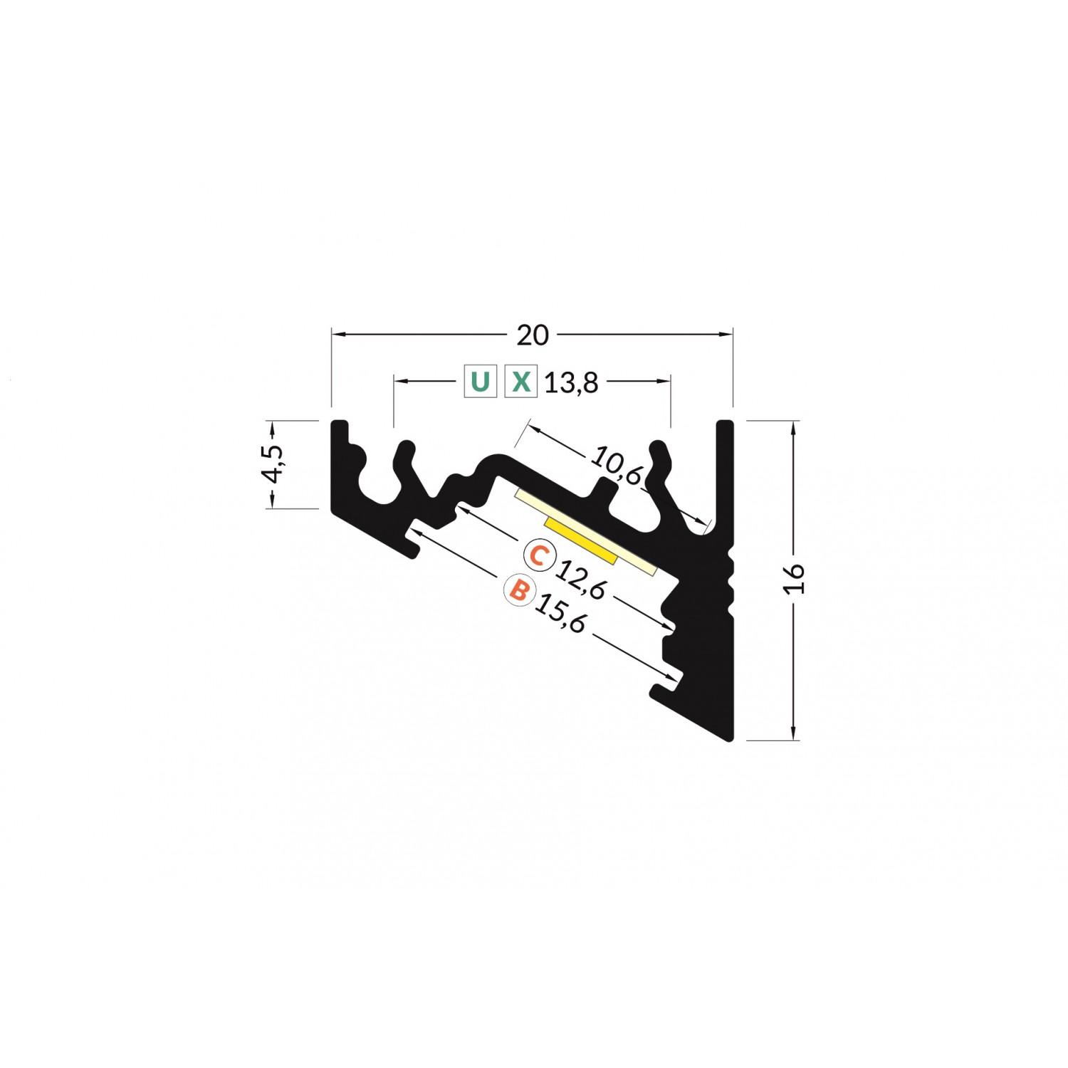 Perfil Aluminio Esquina Variable 1m para Tiras LED hasta 10 mm