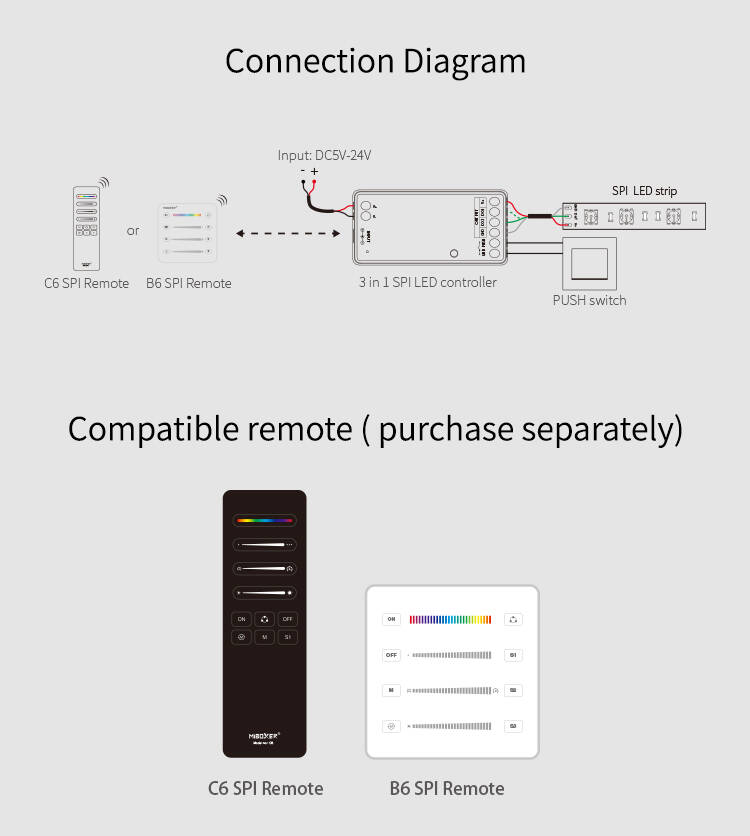 El Controlador Digital SPI 3 en 1 MiBoxer SPIR3 es la solución ideal para gestionar tiras LED digitales Monocolor, RGB y RGBW con total precisión. Compatible con voltajes de 5V, 12V y 24V DC, soporta una corriente máxima de salida de 10A, garantizando un rendimiento óptimo. Su diseño compacto en color blanco, fabricado en PC resistente, permite una instalación sencilla en superficie para uso en interiores. Funciona en un rango de temperatura de -10 °C a 40 °C y ofrece regulación mediante mando a distancia compatible (no incluido). Certificado con CE, EMC, RoHS y UKCA, este controlador proporciona una experiencia de iluminación versátil y fiable, respaldada por una garantía de 3 años. Perfecto para personalizar ambientes con alta calidad y control avanzado.