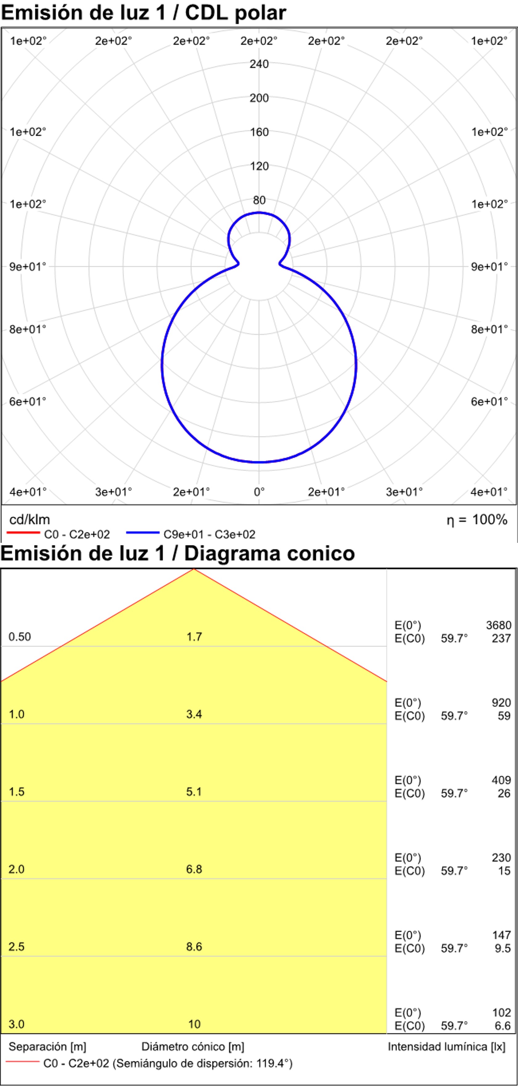 Especificaciones y datos fotométricos