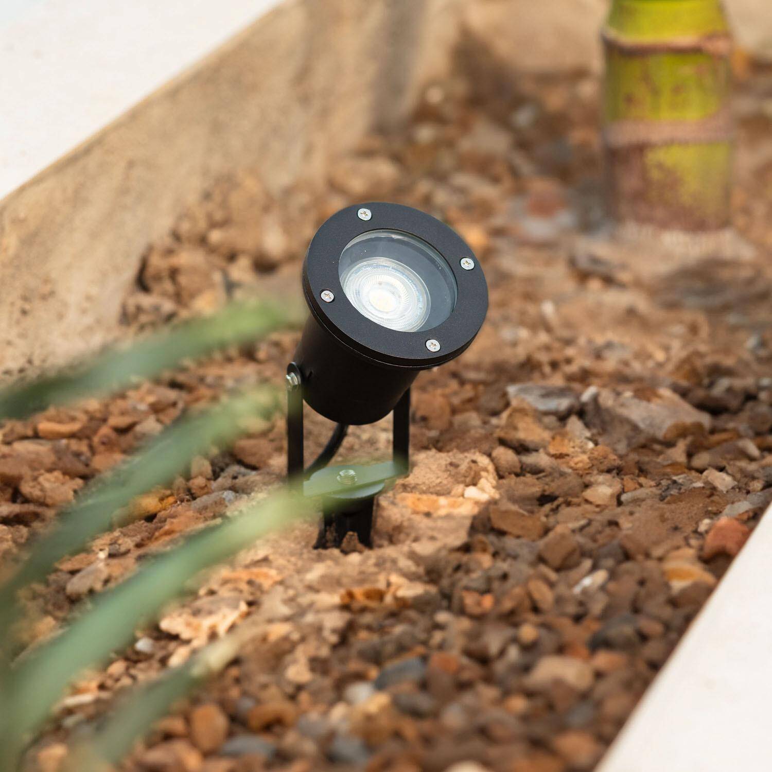 Este foco exterior GU10 de aluminio con pincho es la solución perfecta para iluminar y destacar zonas en jardines y exteriores. Su diseño robusto en negro y su protección IP65 garantizan resistencia frente a la intemperie, soportando temperaturas desde -20 °C hasta 50 °C. Está preparado para bombillas GU10 (no incluidas), con una potencia máxima de 10W, ideal para crear ambientes acogedores o resaltar detalles arquitectónicos y vegetación. Su instalación con pincho facilita su colocación en tierra o macetas, aportando versatilidad y estabilidad. Además, cuenta con certificaciones CE, RoHS y UKCA, asegurando calidad y seguridad. Disfruta de un foco duradero y eficiente con 3 años de garantía, perfecto para realzar cualquier espacio exterior.