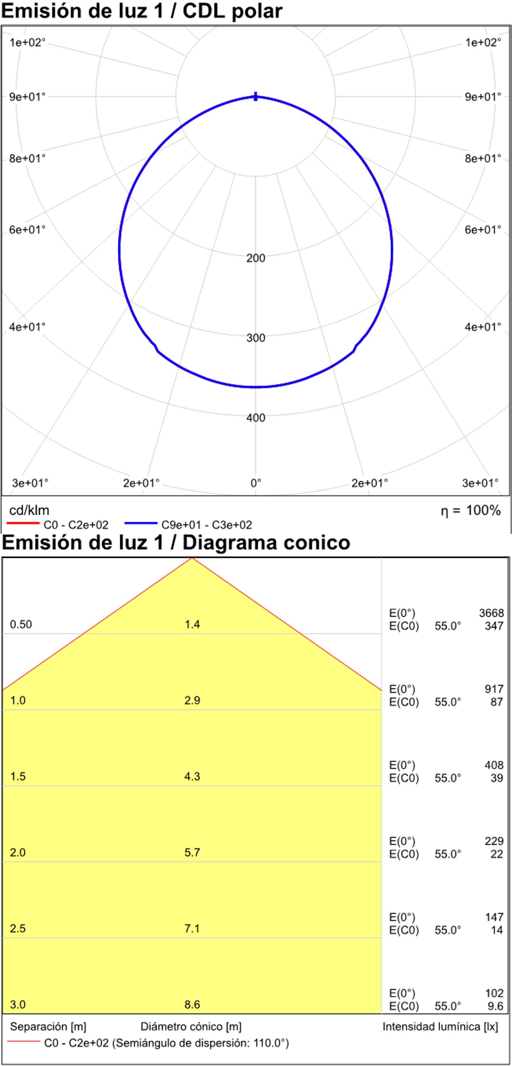 Especificaciones y datos fotométricos