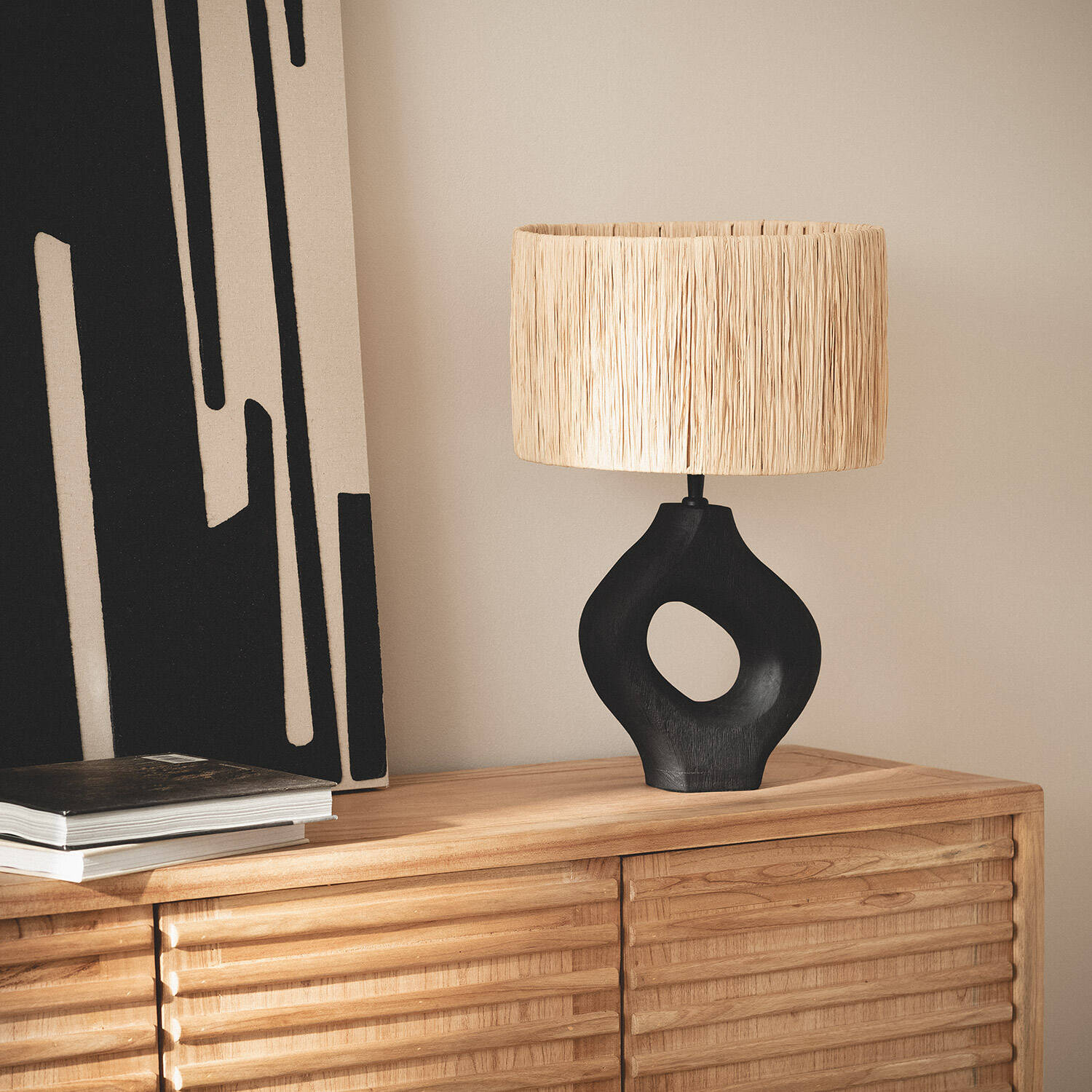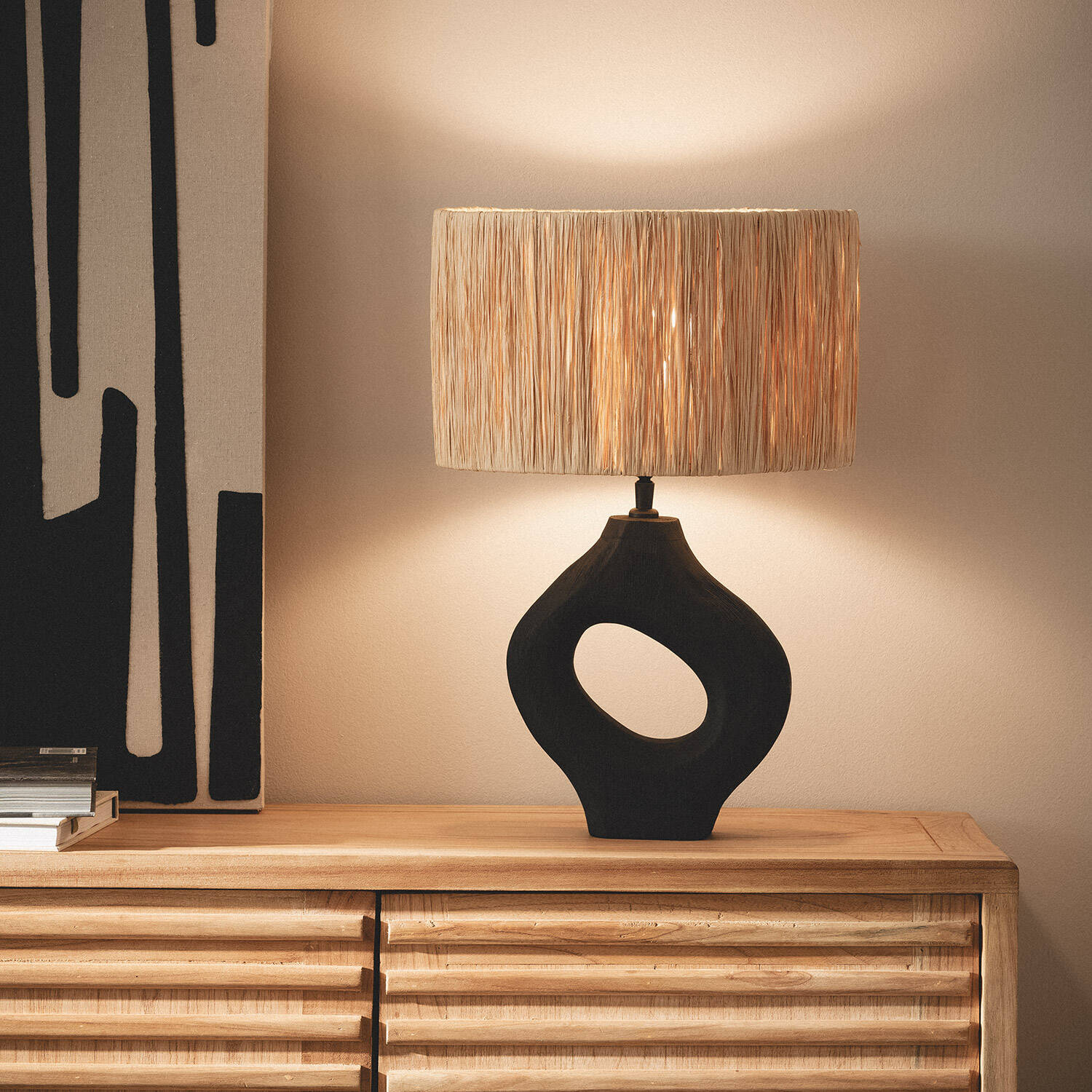 La lámpara de mesa Dhara ILUZZIA combina diseño y funcionalidad con un estilo natural y elegante. Su estructura está fabricada en madera de acabado negro, con una forma escultórica que aporta un toque artístico a cualquier estancia. La pantalla, elaborada en material natural, proporciona una iluminación cálida y acogedora, ideal para ambientes interiores. Funciona con bombillas E27 de hasta 40W (no incluidas) y cuenta con interruptor integrado en el cable para un manejo sencillo. Con certificaciones CE, RoHS y UKCA, garantiza calidad y seguridad. Perfecta para salones, dormitorios o espacios de trabajo, esta lámpara es una pieza decorativa que aporta calidez y personalidad a tu hogar, respaldada por 3 años de garantía.