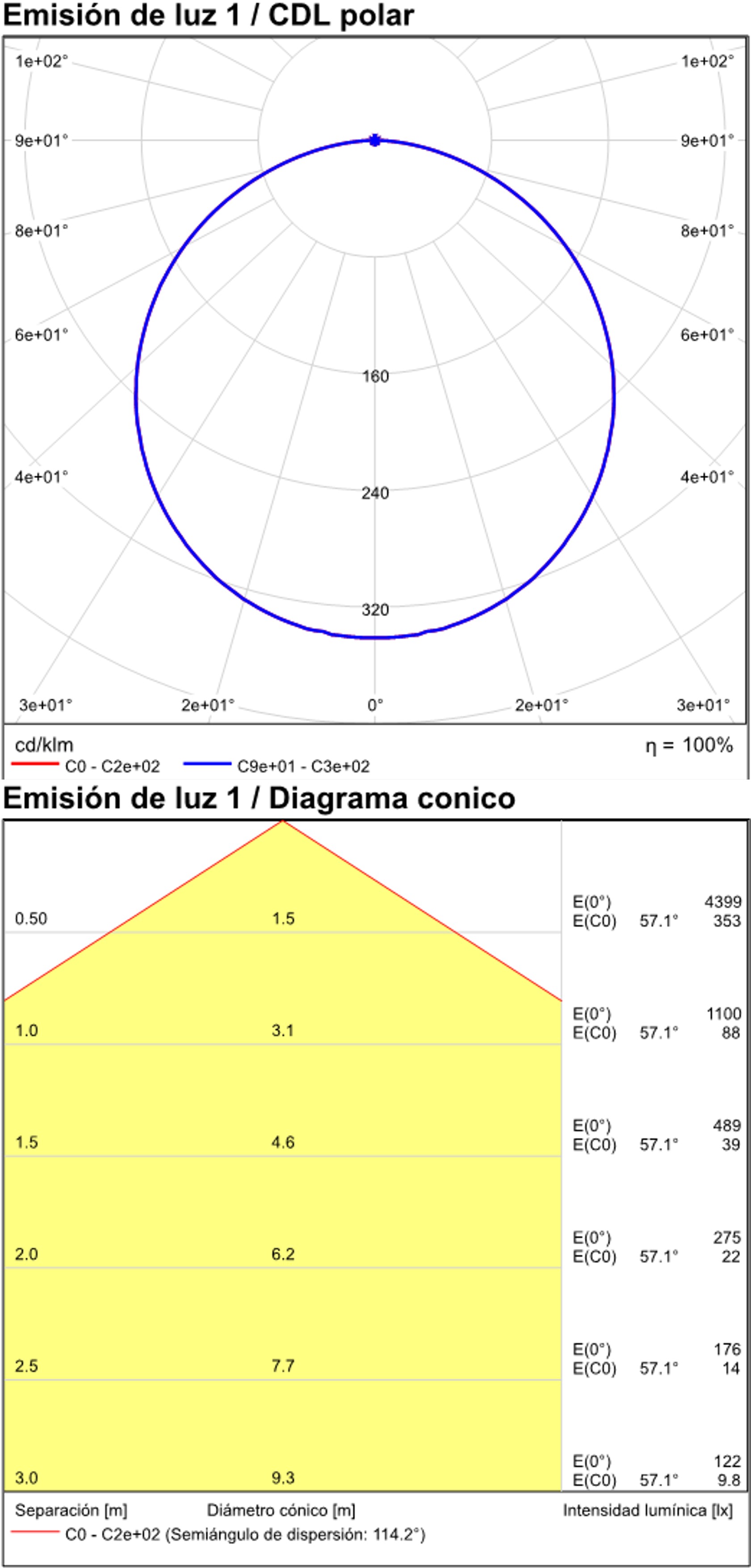 Especificaciones y datos fotométricos