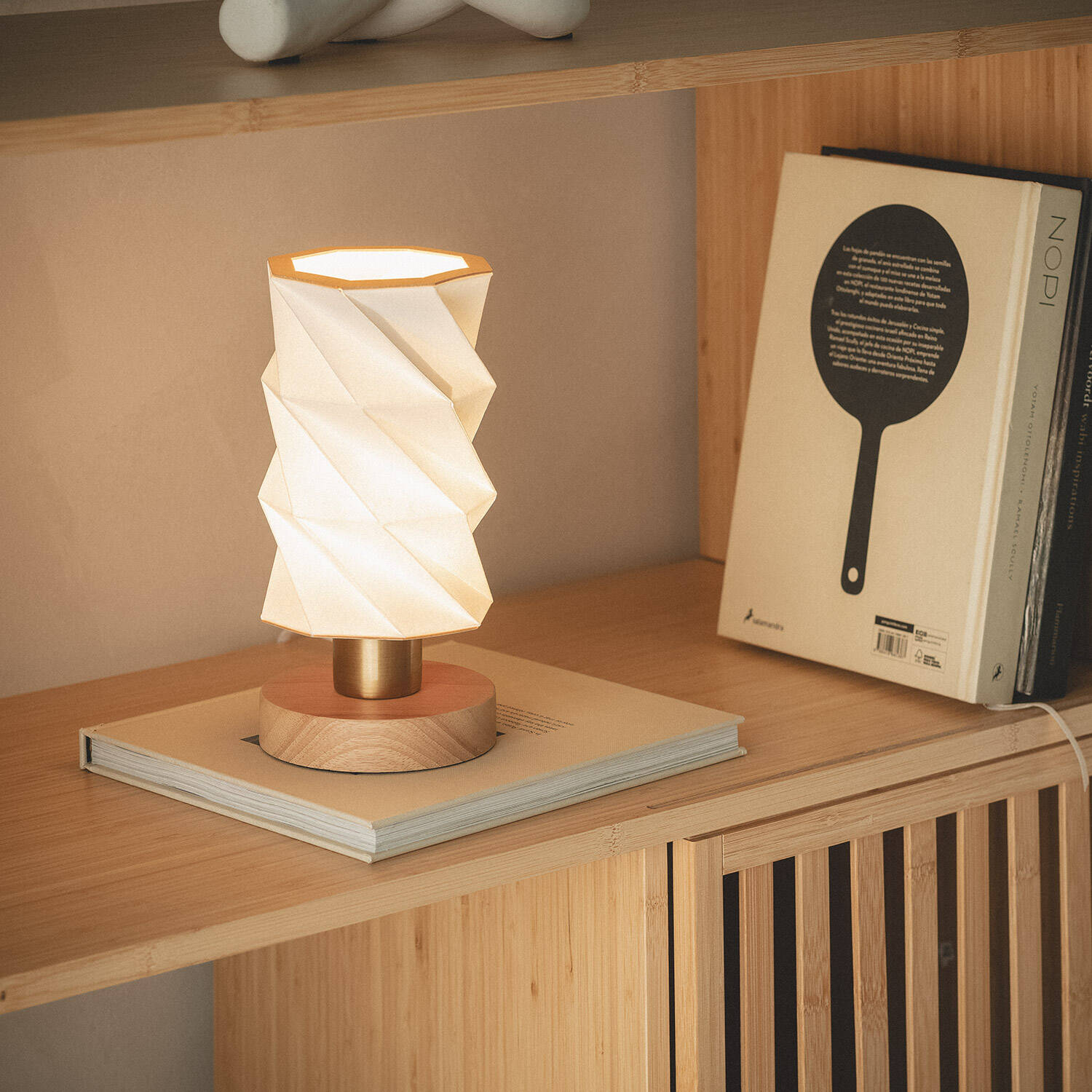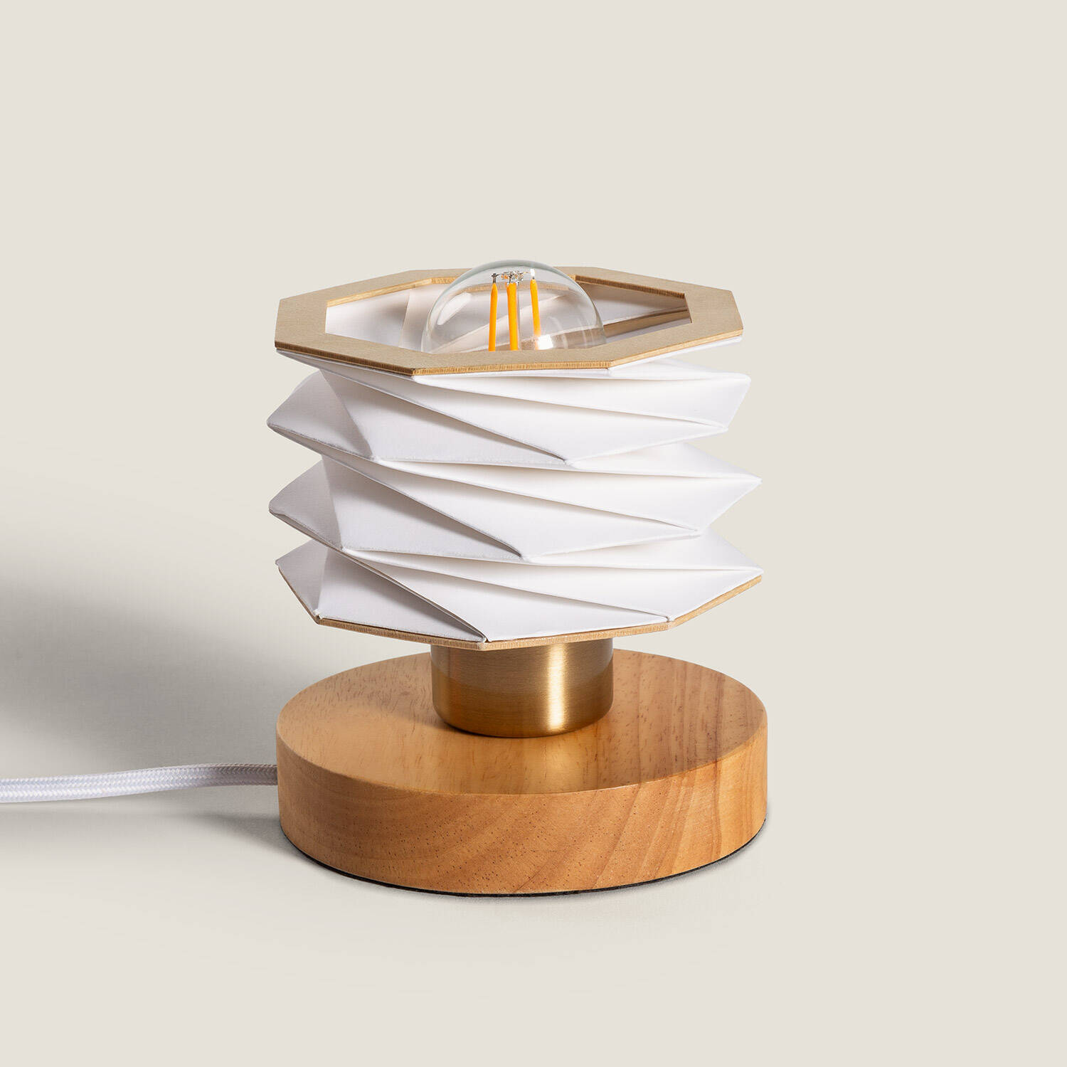 La lámpara de mesa Madera Hiva destaca por su diseño contemporáneo y elegante, que combina madera natural con una pantalla de papel plegado en tonos blanco o gris. Su estructura robusta y cálida aporta un toque de sofisticación y confort a cualquier espacio interior. Compatible con bombillas E14 de hasta 20W, esta lámpara es ideal para ambientes que requieren una iluminación ambiental acogedora. Con certificaciones CE y RoHS, garantiza calidad y seguridad. Su base de madera sólida y su acabado cuidado hacen de esta pieza un complemento decorativo funcional, perfecto para salones, dormitorios o zonas de lectura. Además, cuenta con una garantía de 3 años, asegurando durabilidad y confianza.
