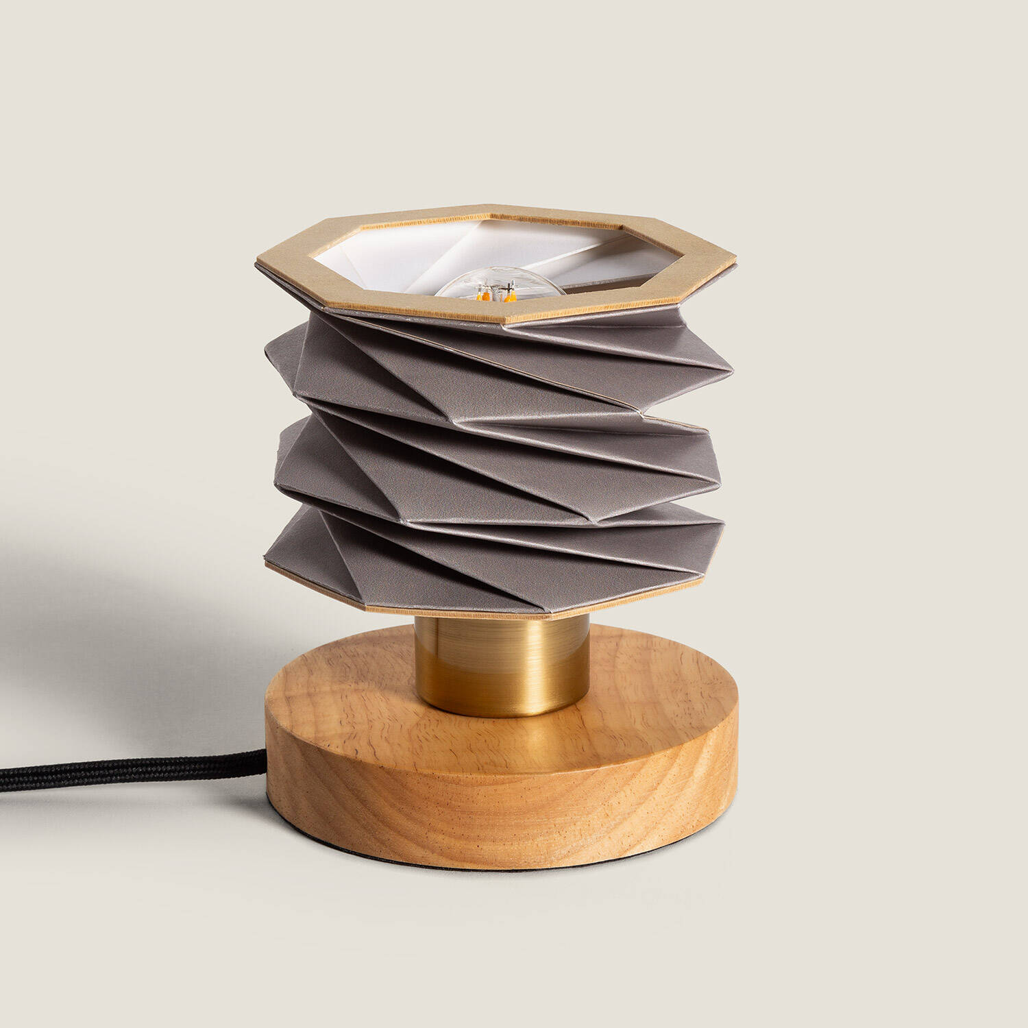 La lámpara de mesa Madera Hiva destaca por su diseño contemporáneo y elegante, combinando madera natural con una pantalla de papel plegado en tonos gris o blanco. Su estructura geométrica crea un juego de luces y sombras único, ideal para aportar calidez y estilo a cualquier espacio interior. Compatible con bombillas E14 de hasta 20 W (no incluida), ofrece una iluminación ambiental perfecta para salones, dormitorios o zonas de lectura. Con certificación CE y RoHS, garantiza calidad y seguridad. Su base robusta de madera y detalles metálicos dorados aportan un toque sofisticado, mientras que su protección IP20 la hace apta para interiores. Cuenta con 3 años de garantía, asegurando durabilidad y confianza.
