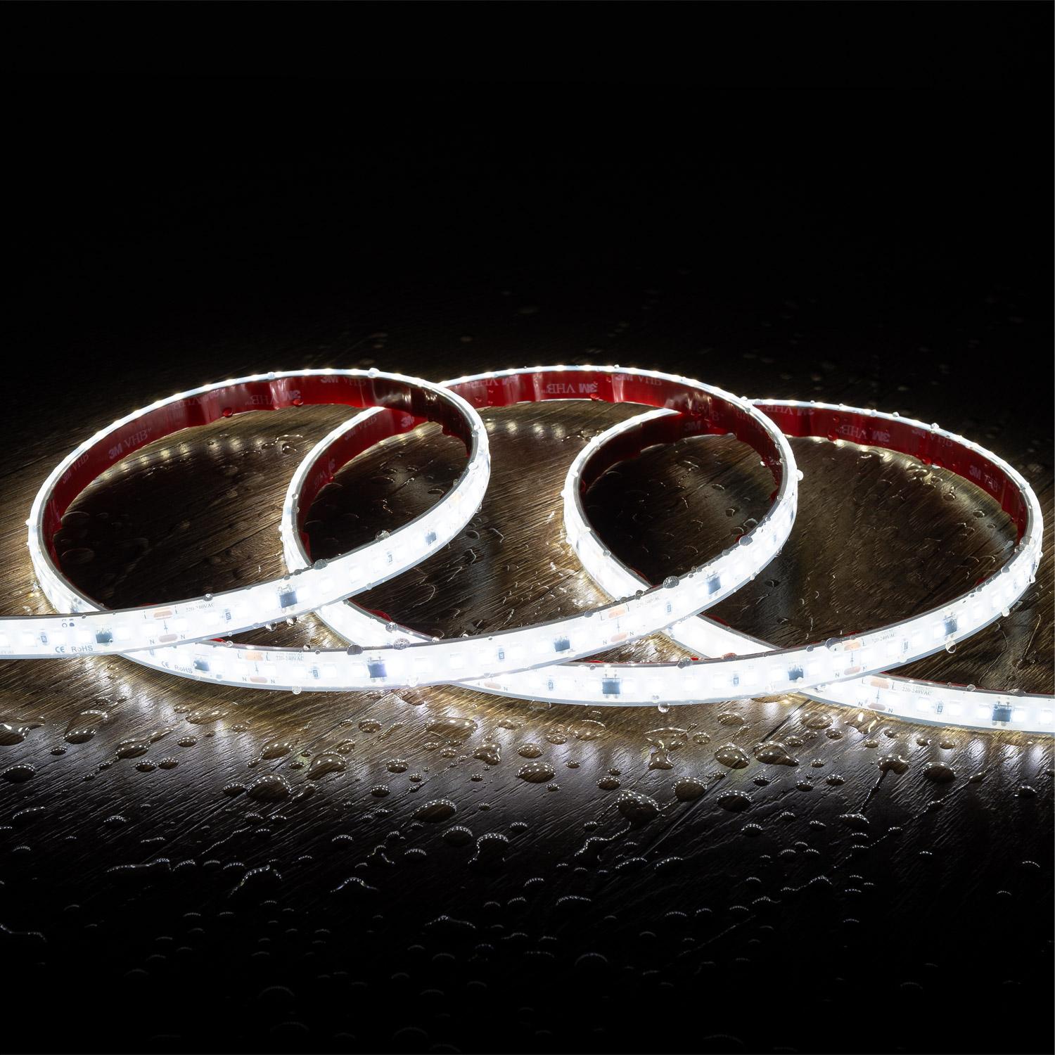 Tira LED Regulable 220V SMD Autorectificada 120 LED/m 14W/m 1680lm/m SILICONE FLEX Ancho 12mm Corte 10cm IP67 a Medida