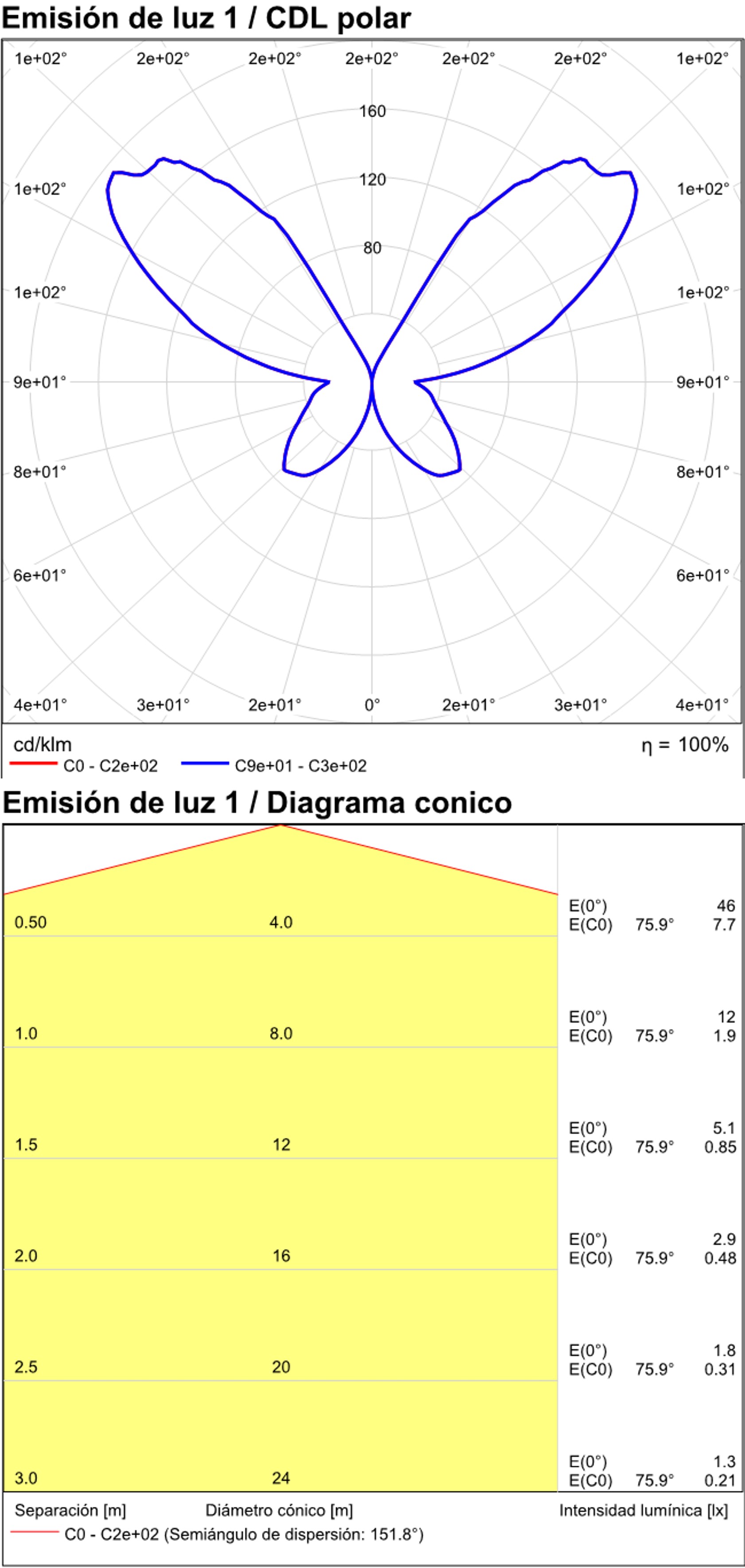 Especificaciones y datos fotométricos